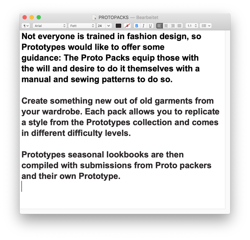<프로토타입스>의 업사이클링 브랜딩의 매력 요소 중 하나는 그들이 오픈 소스처럼 공개한 DIY 프로토 프린트(PROTO PRINTS) 그리고 프로토 팩(PROTO PACK) 키트(바느질 패턴 포함)인데,