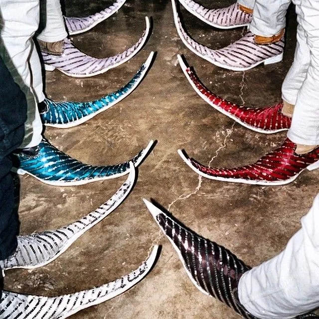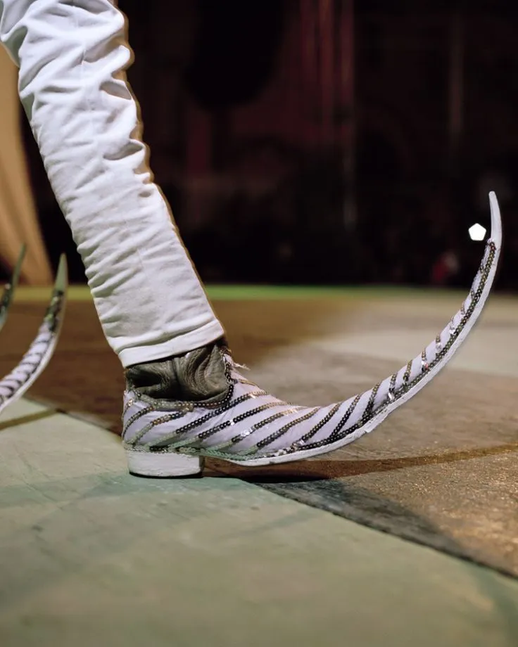 누군가는 정원용 호스로 직접 부츠를 만들었고, 플라스틱 폼을 이용해 신발 끝을 연장하면서 화려한 장식을 더하는 사람도 있었다.