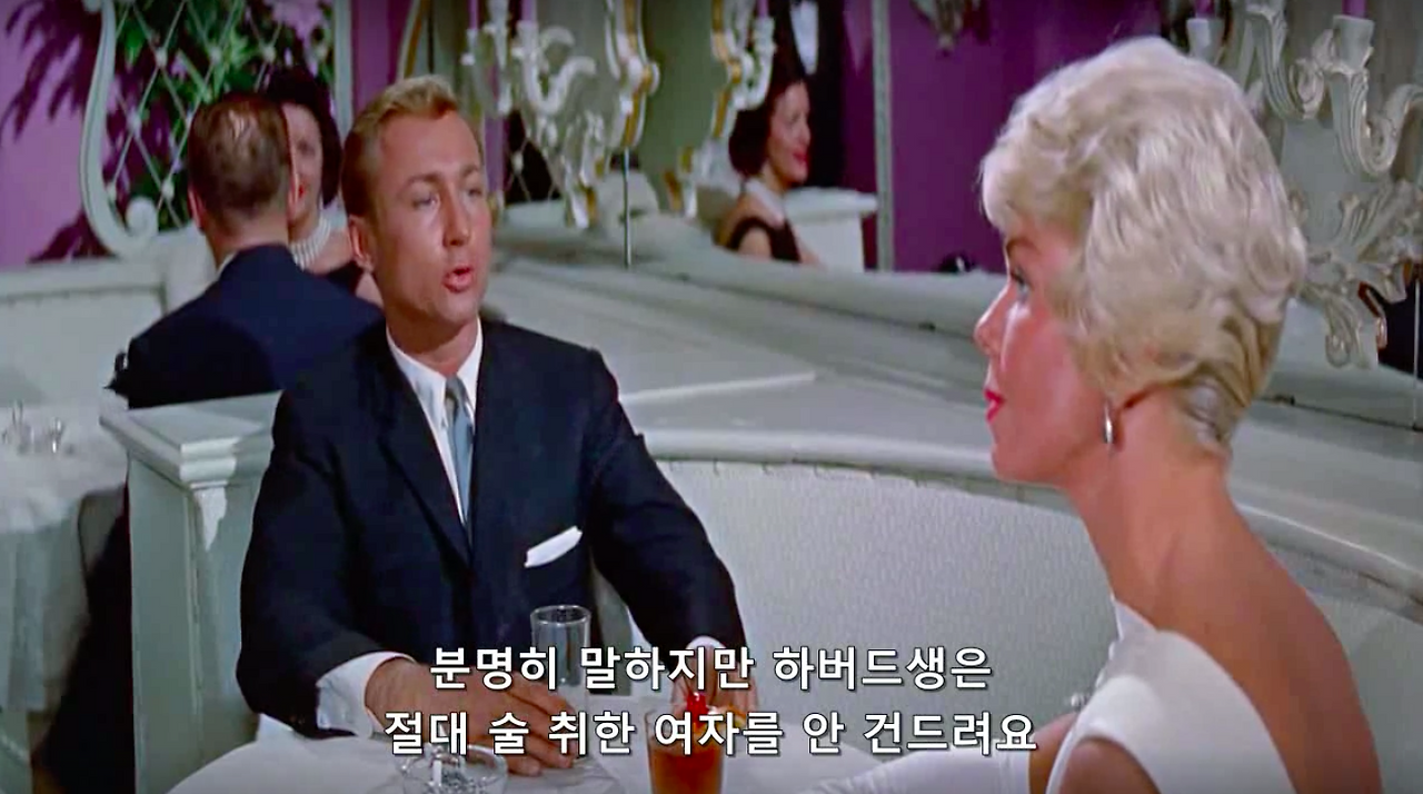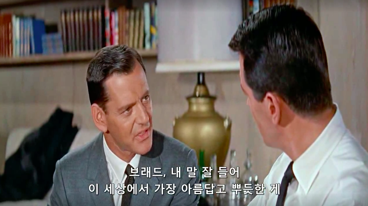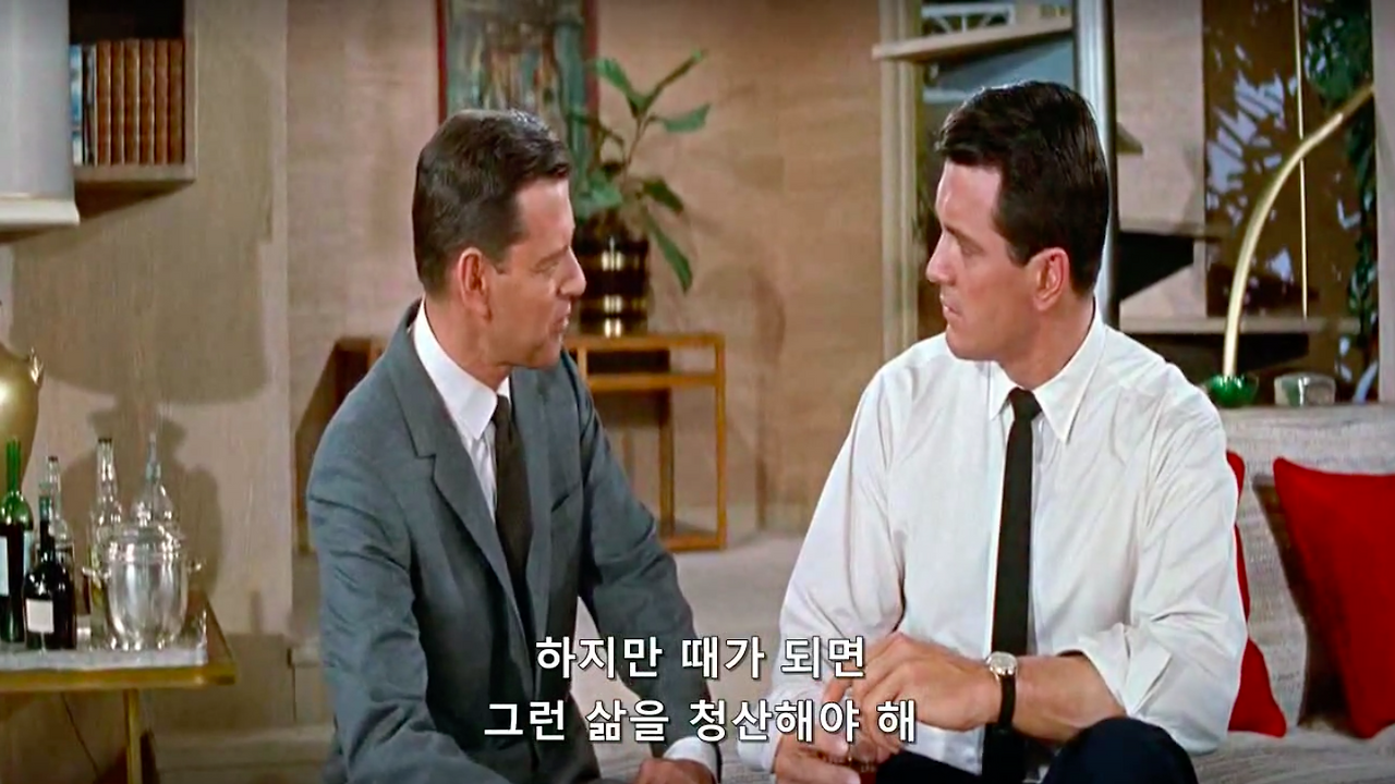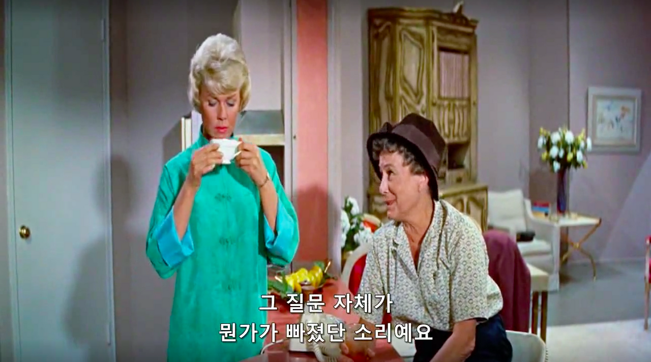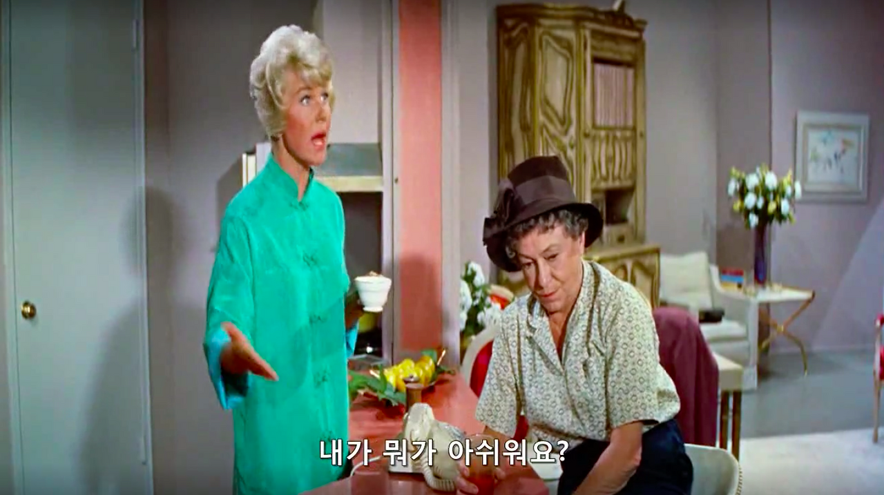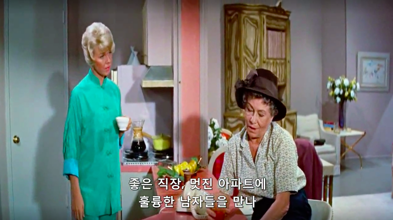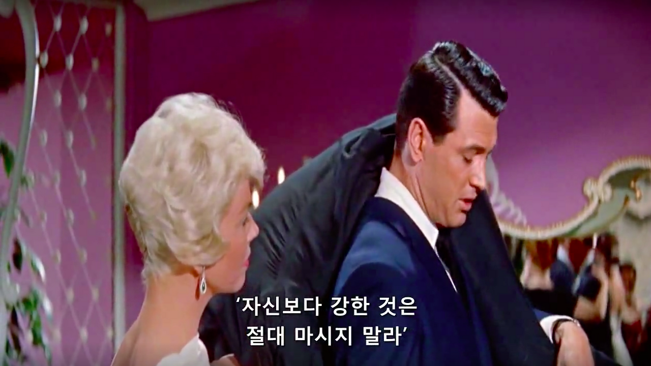 마이클 고든 감독의 1959년작, 영화 필로우 토크. 록 허드슨과 도리스 데이 그리고 토니 랜덜이 주연을 맡았다. 제임스 딘과 함께 당대 최고의 스타였다는 34살 록 허드슨의 진하게 잘생긴 외모와 굵직한 몸 그리고 50, 60년대 섹스 코미디 스타 도리스 데이의 세련된 스타일링과 새침함을 구경해 볼 수 있는 것이 포인트.