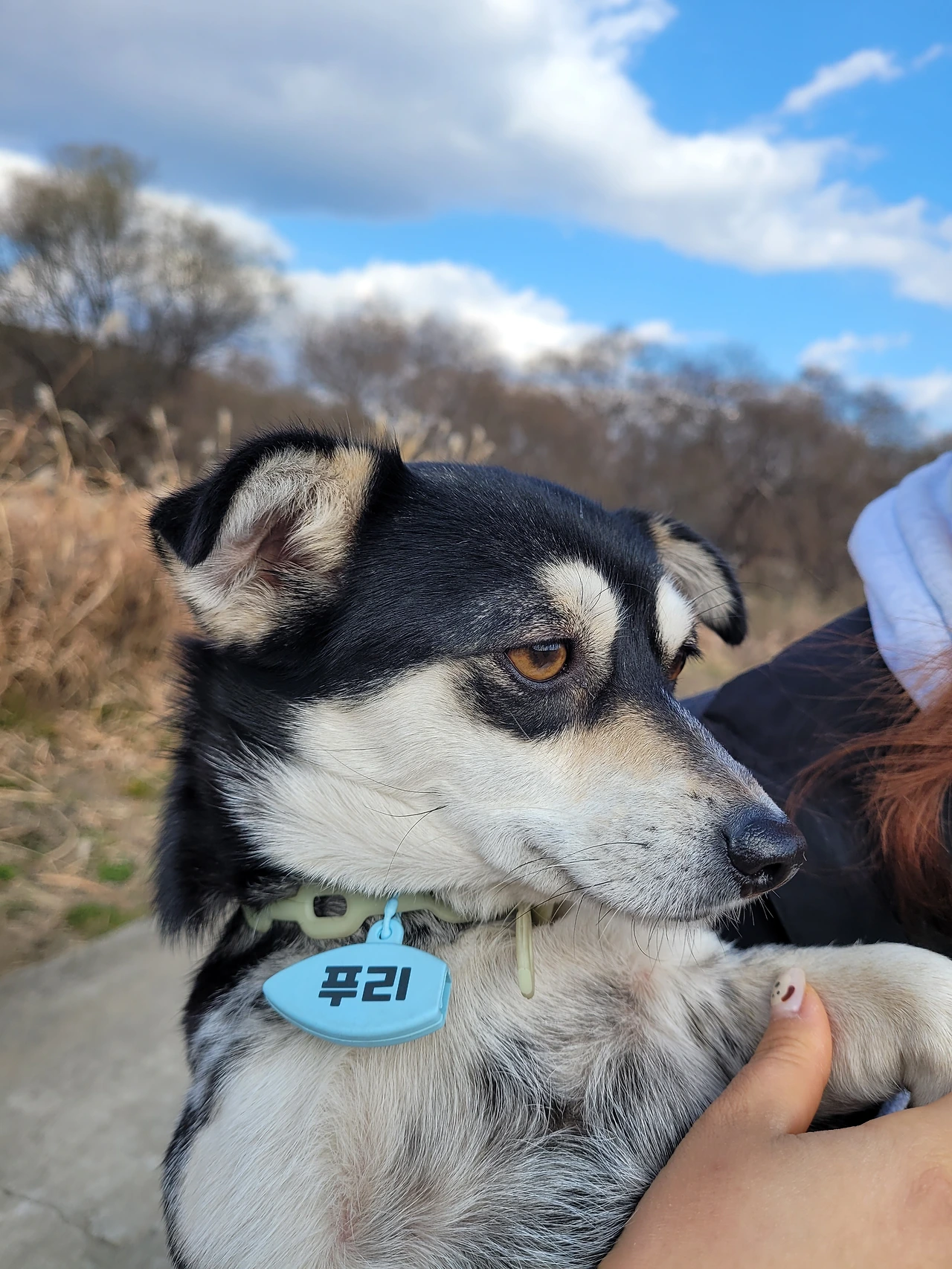 "산책을 가면 사람들이 널 보고 예쁘다고 한다" 며 흐뭇해하는 주인.