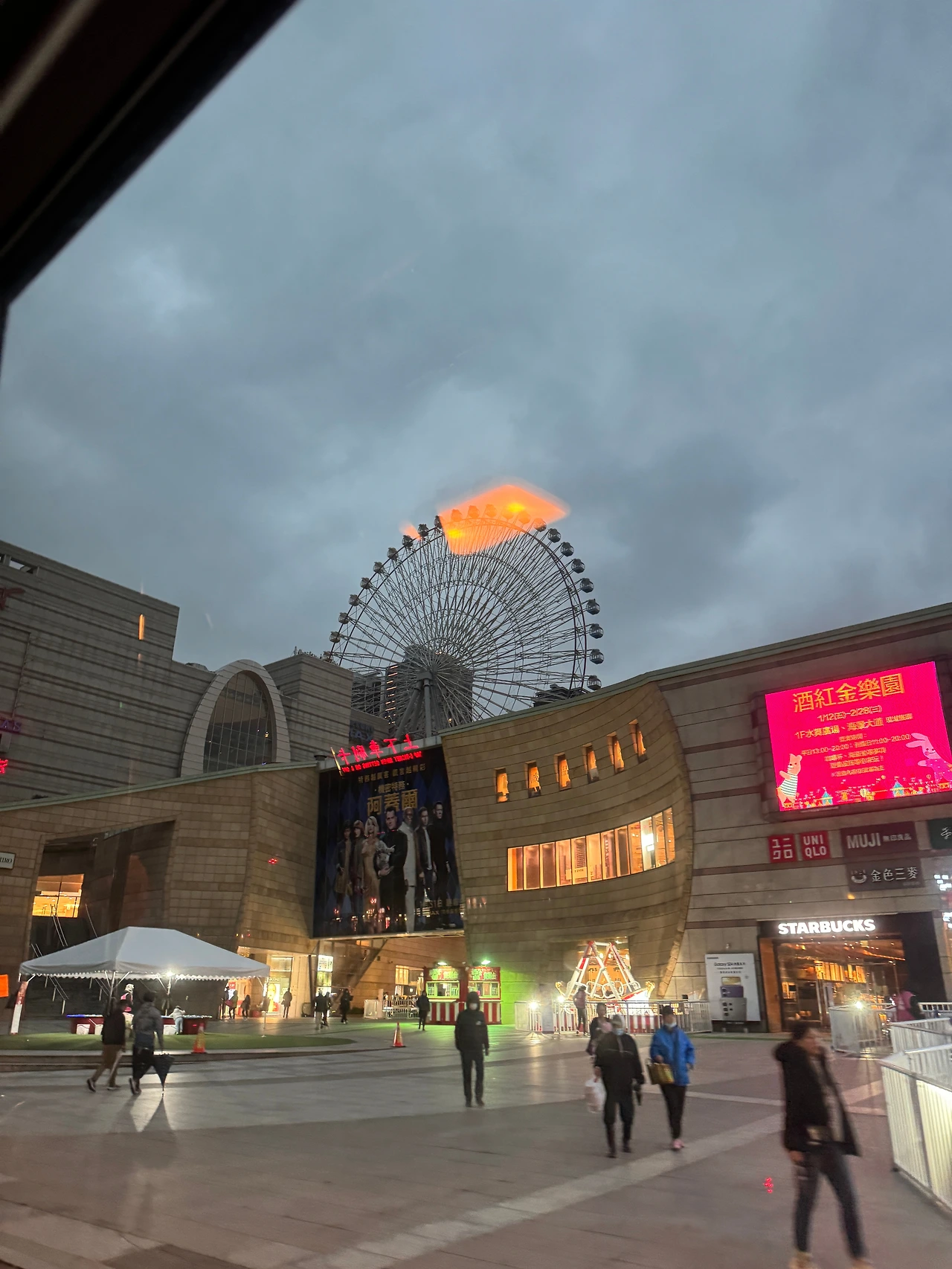 쇼핑몰에서 식사를 하고 비장하게 옥상으로 올라가 관람차 앞에 섰다. 역시나 크기도 크고 날씨가 흐리고 바람이 불어서인지 '탈 수 있을까?' 하는 생각이 들었다. 거기다 오늘따라 이용객도 우리 말곤 여학생으로 보이는 무리 한 팀 밖에 없었다. 탈까 말까 고민하다 타기로 결정하고 관람차에 올랐다. 역시나 올라갈수록 왠지 더 무서운 기분이 들었다. 관람차 내부 손잡이를 꼭 잡고 올라가던 중 시내를 바라보니 타이베이 101 빌딩의 야경이 보였다. 그것을 보고 있자니 왠지 모를 친근감과 '이곳에 생활하고 있구나.'라는 생각이 들었다. 그렇게 무서움과 웃음이 버무려진 탑승을 마치고 집으로 돌아왔다.