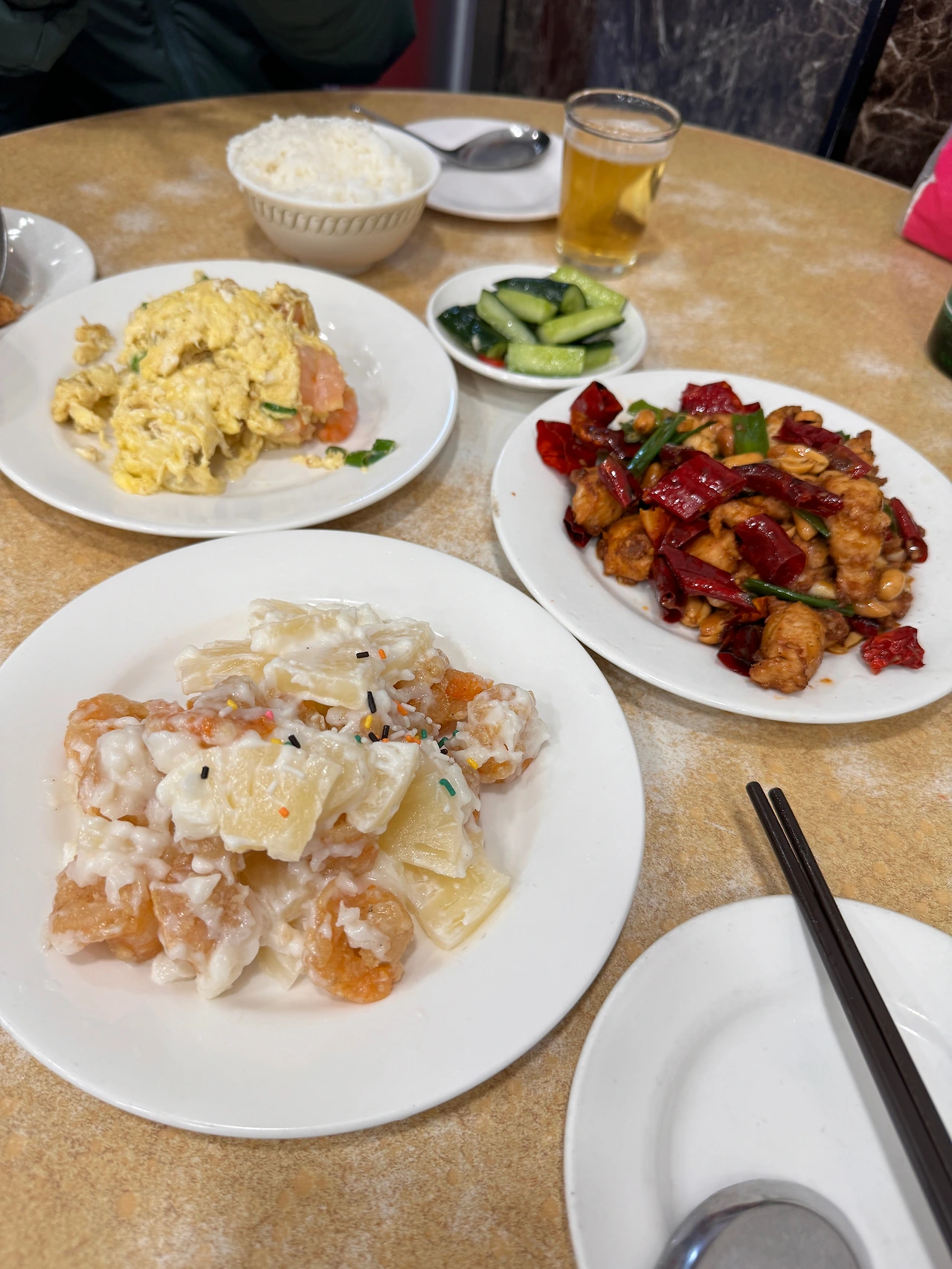 병원 일정을 마치고 예전에 아이가 맛있게 먹었던 시먼딩의 '진천미' 식당을 갔다. 날씨가 좋지 않았음에도 식당 앞에는 많은 사람들이 줄 서서 기다리고 있었다. 줄 서서 기다려보니 대부분의 사람들이 한국인들이었다. 약 20분 정도 기다린 후 식당에 들어가 식사를 했다. 지난번에 방문했을 때는 길 건너의 본관에서 식사를 했는데, 오늘은 본관 문을 닫는지 별관만 운영하고 있었다. 그래서 지난번보다 대기 줄이 길었던 모양이다. 아이가 맛있게 먹었던 계란새우볶음과 닭고기 볶음, 파인애플 마요네즈 새우 등을 주문했다. 그런데 먹으면서 지난번 본관에서 먹은 것과 오늘 별관에서 먹은 음식 맛이 조금 차이 나는 것 같았다. 특히 지난번과 오늘 동일하게 주문한 계란새우볶음을 먹어보며 그런 생각이 들었다. 그래서 우리는 '본관 주방장님 실력이 더 좋은가 봐'라는 얘기를 주고받으며 다음에 오게 되면 본관으로 가겠다는 다짐 아닌 다짐을 했다.