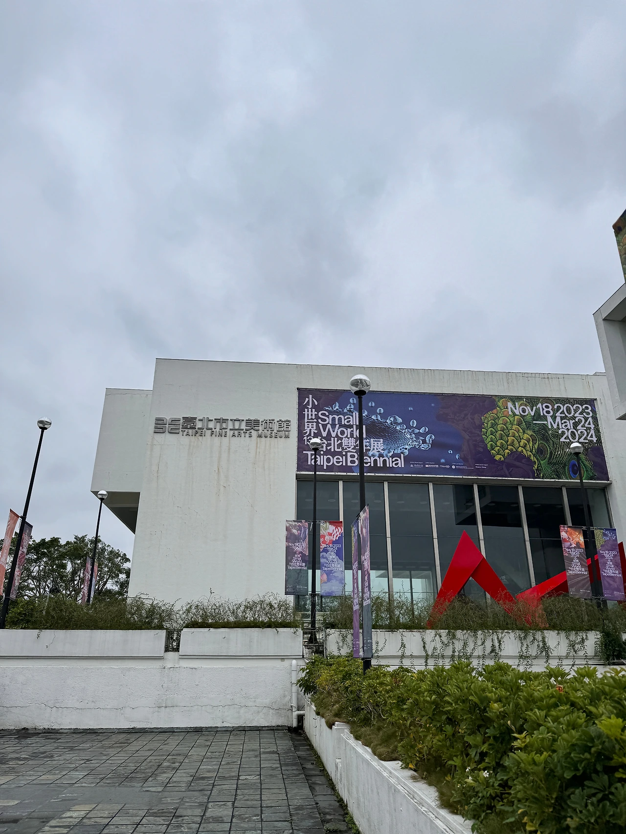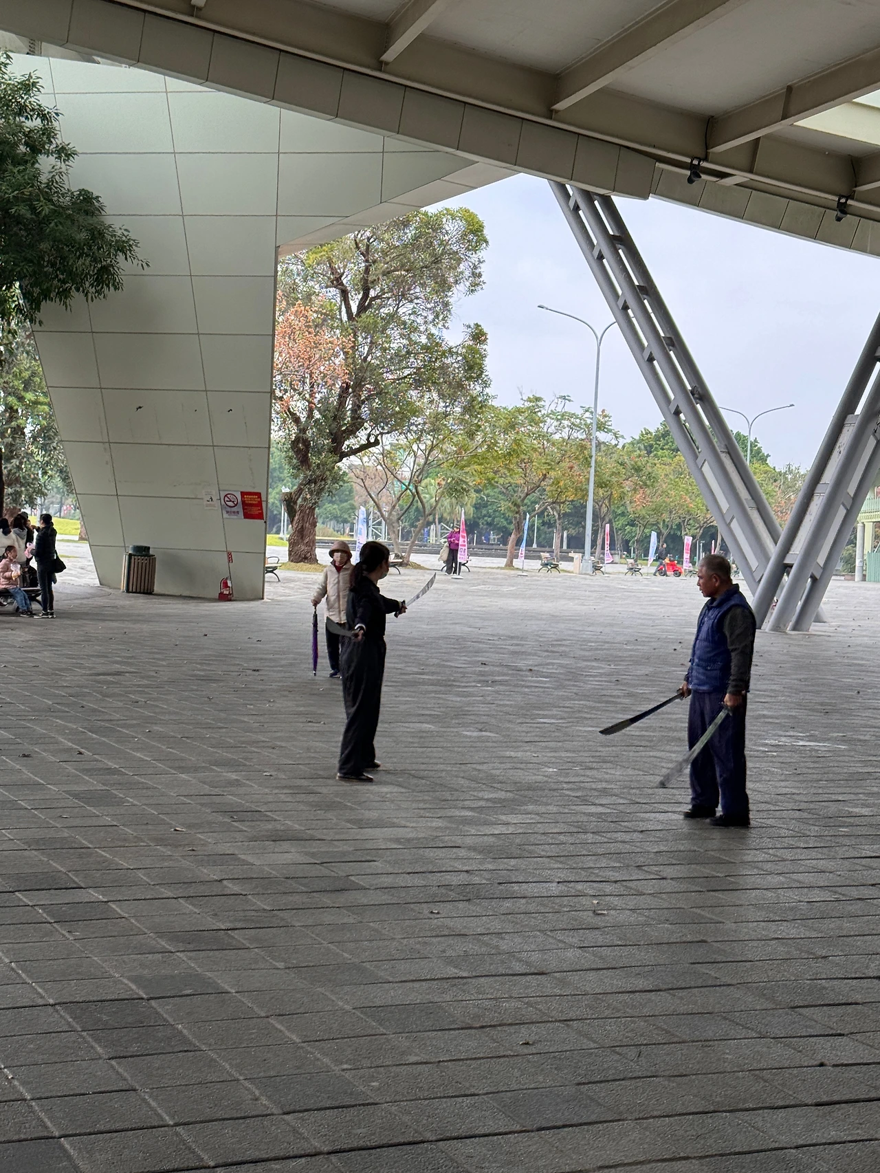 다음 날, 주말을 맞아 타이베이 시민들도 바깥나들이에 나선 사람들이 많았다. 우리는 타이베이 시립 미술관을 가보기로 했다. 이곳은 MRT 위안산역 인근에 위치해 있다. 역 바로 앞에는 엑스포공원이 있는데, 주말이면 작은 길거리 마켓도 열리고 사람들이 모여 버스킹 공연도 보고 그러는 것 같다. 우리도 그런 모습을 구경하며 지나는데, 눈앞에 칼을 들고 휘두르는 사람들이 보였다. 무협 영화에서나 보던 그런 칼을 양손에 들고 서로 동작을 보여주고 따라 하며 연습을 하고 계셨다. 왠지 이곳이 중국 문화를 공유하는 곳이라는 생각이 다시듯 들었다.
