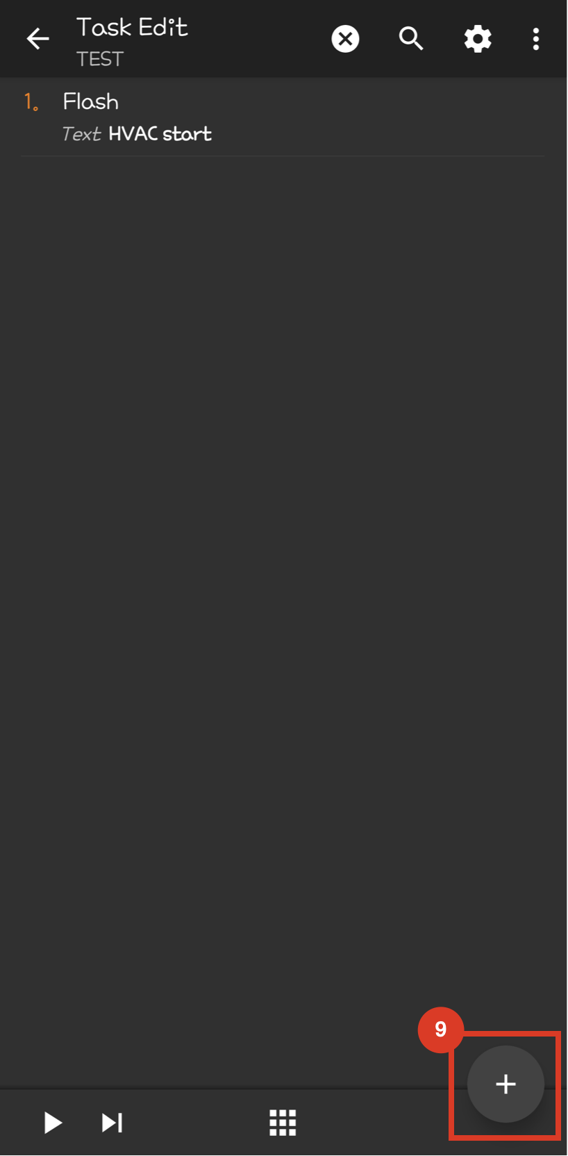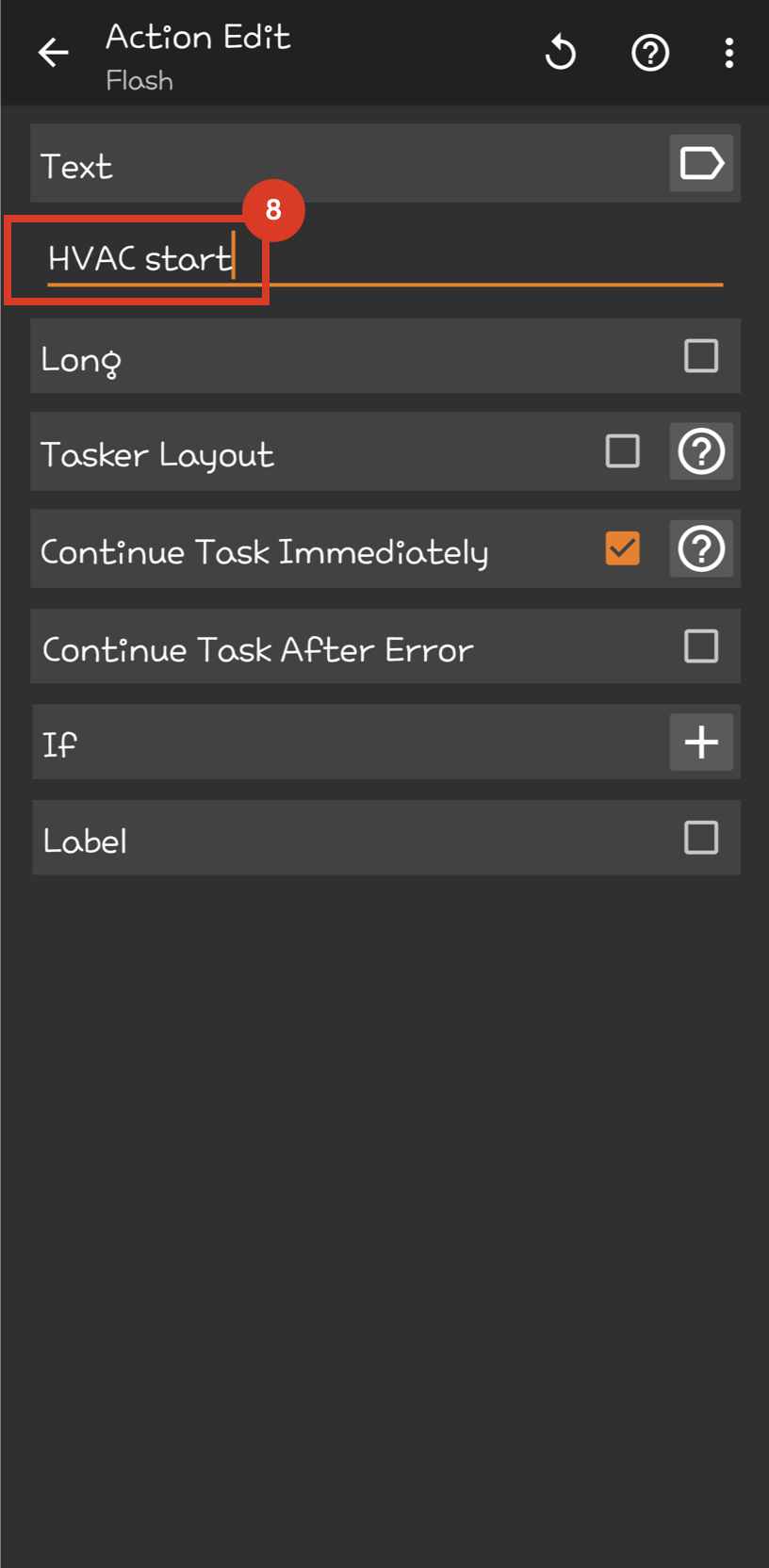 (8) Flash 메시지를 입력한다. 본인이 편하게 입력하면 된다. “에어컨 켜주셈” 이런 것도 되지만 HVAC Start로 입력했다. 그러고 나서 왼쪽 상단의 뒤로가기를 누른다.