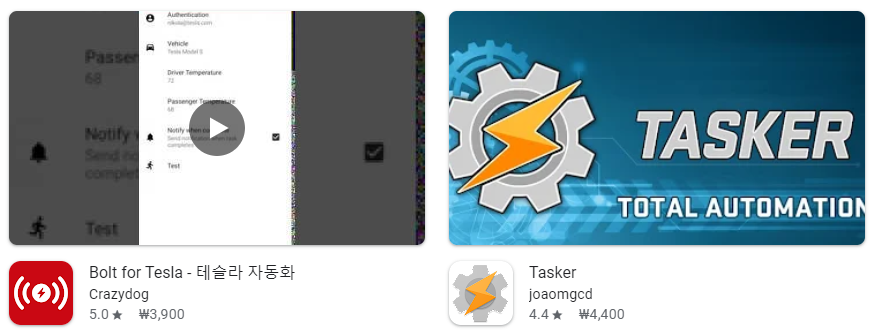 써드파티 앱 Tasker와 Bolt for Tesla를 추천한다. 각각 3.49달러, 2.99달러의 유료 앱이지만 다양하게 사용할 수 있어서 나 같은 경우에는 아주 만족하면서 사용하고 있다.