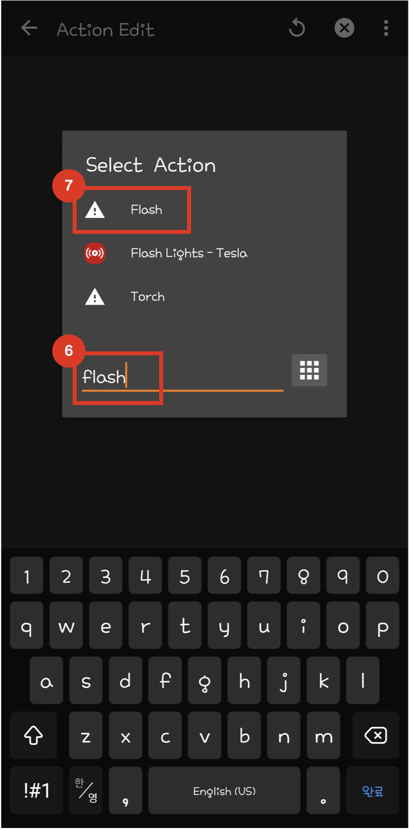 (6) ‘flash’라고 검색하여 (7) Flash 메뉴를 선택한다.
