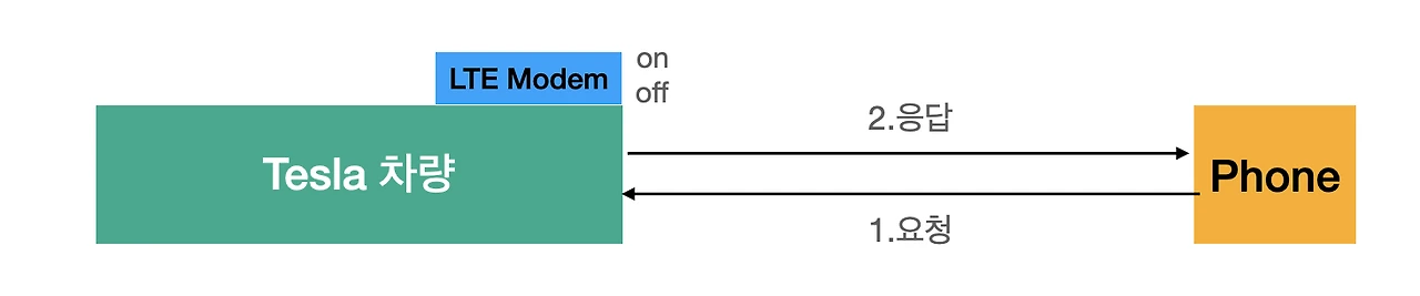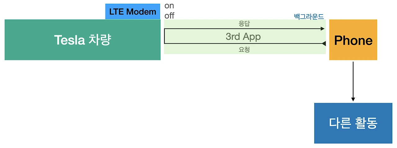 기본적으로 스마트폰에서 테슬라 관련 어떤 앱을 실행하면 이 명령에 대한 행동을 차량에 요청한다. 그러면 차량은 그 요청을 받아서 인증을 한 후에 해당 명령을 실행한 후 그에 대한 응답을 스마트폰에 되돌려주게 된다.