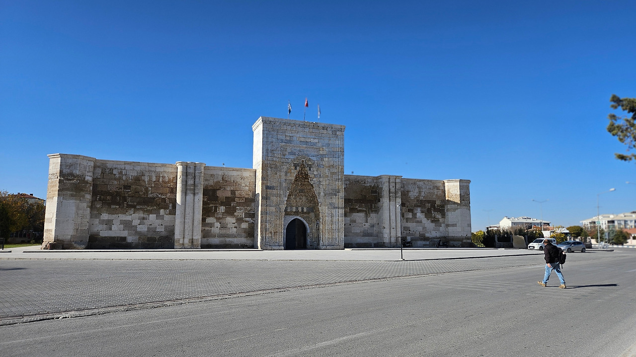 잠시 후 버스가 멈춰 선 곳이 콘야의 ‘술탄 하니 카라반 사라이’였다. 겉모습은 정제된 대칭의 아름다움을 갖춘 성채 같았다. 1229년에 지어진 곳으로 이 나라에서 가장 규모가 크다고 했는데, 안으로 들어서는 순간 묵직한 세월의 무게감이 느껴졌다. 안쪽 기둥마다 오래된 카펫이 걸려 있고, 벽면 곳곳에는 일본풍 그림이 장식돼 있어 작은 미술관 같았다. 천장에는 비둘기가 떼 지어 날아다녔는데 아마도 집을 지어놓았을 법했다. 출입문 근처 카페에서 아내와 마주 앉아 홍차를 마시며 잠시 숨을 골랐다. 상인들이 겪었을 긴 여정과 낯선 땅에서의 두려움, 그리고 이곳에서 맛보았을 잠깐의 안도감을 떠올려 보았다.