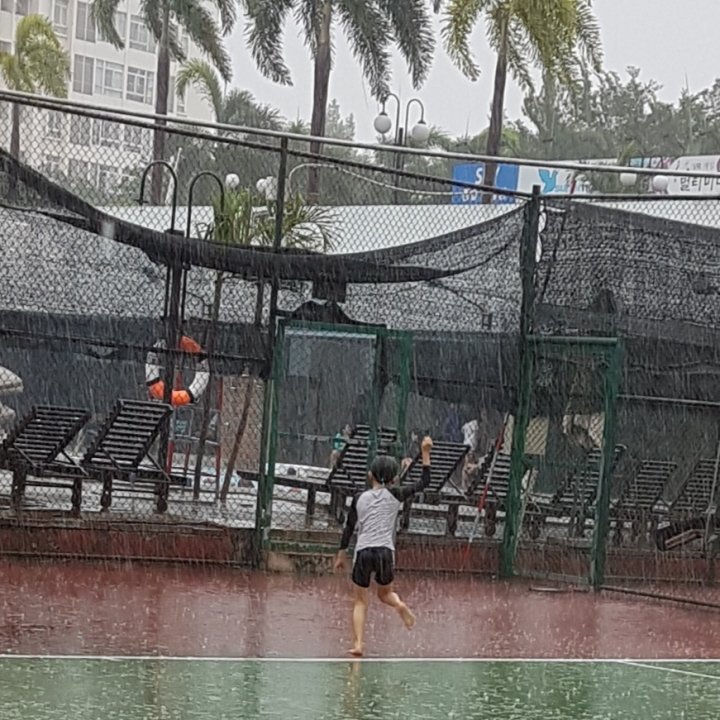 실외 수영장에서 수영하다가 한창 우기 시즌이라 비가 오면 물 만난 고기처럼 마냥 비 맞고 뛰어다니기 좋아하고...