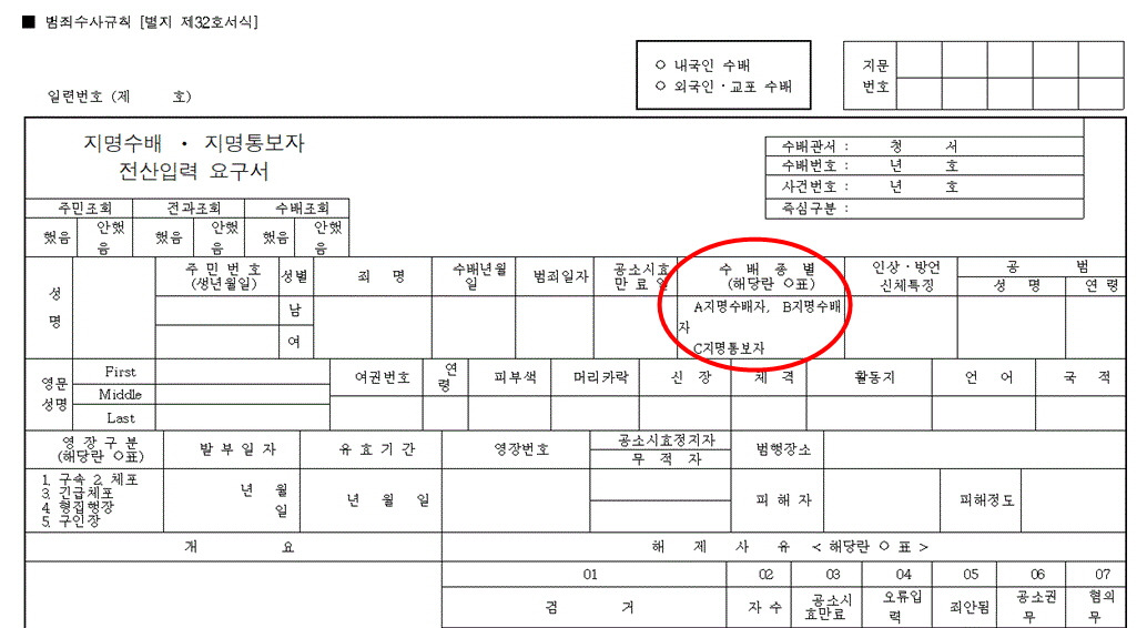 A급수배 / A급지명수배는 잘못된 용어입니다.