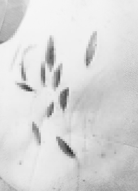 사진에 이상한 점이 눈에 들어왔다. 다섯 번에 걸쳐 찔린 상처 치고는 너무나 예쁘게(?) 상처가 나 있었다. 왼쪽에 3개소, 오른쪽에 2개소 있었는데 모두 평행하게 나 있었던 것이다.