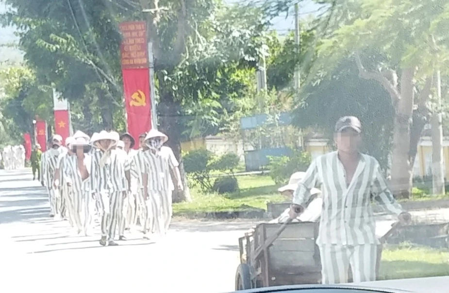수감자들은 영화 빠삐용에 나오는 죄수처럼 줄무늬 옷을 입고 있다.