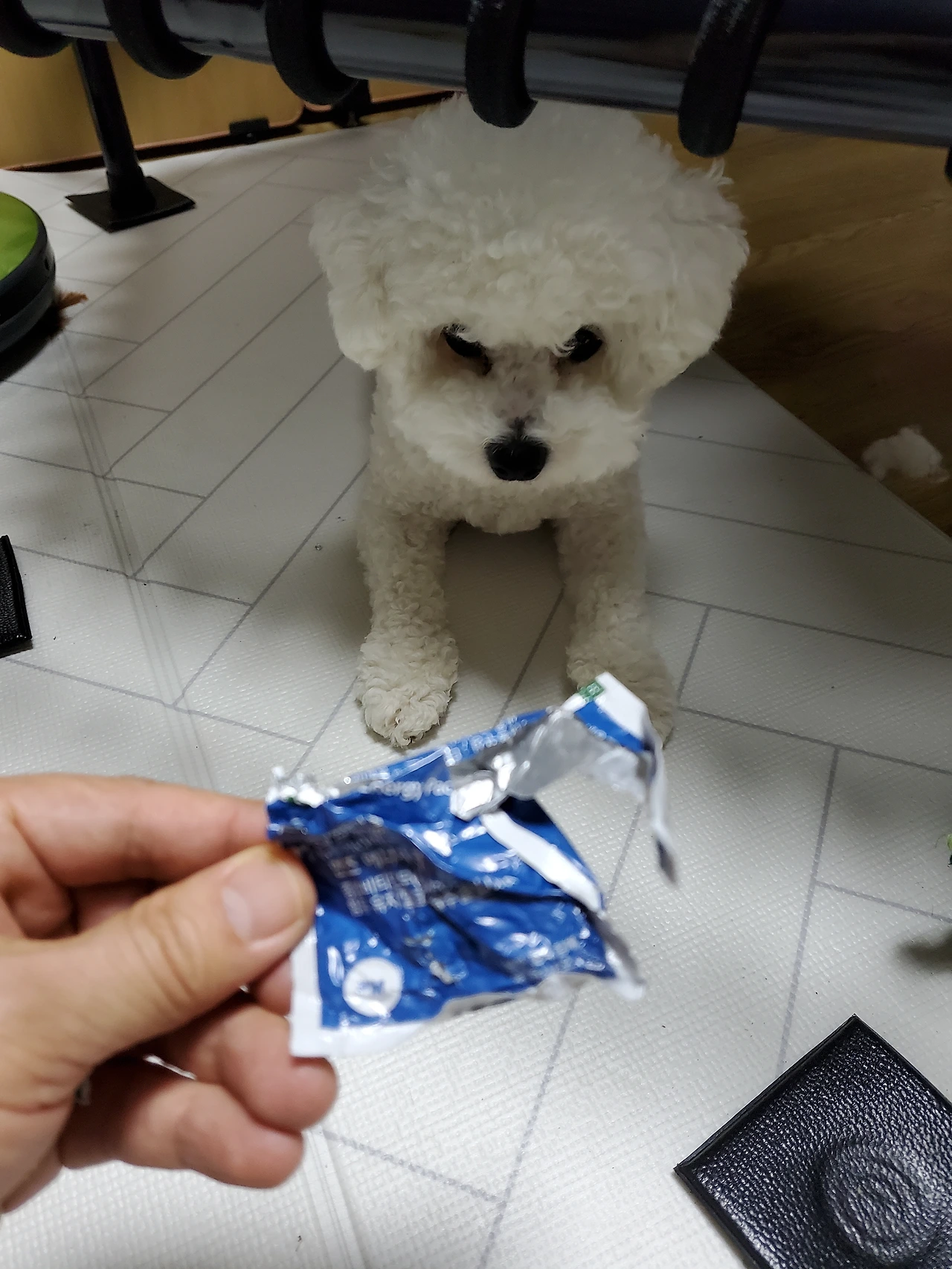 식약처 기준 오메가-3의 기능성은 혈중 중성지질 개선, 혈행 개선, 기억력 개선, 건조한 눈을 개선하여 눈 건강에 도움을 줄 수 있다고 한다. 그 후 체중에 맞춰서 적정량 오메가-3를 간식으로 주곤 한다.