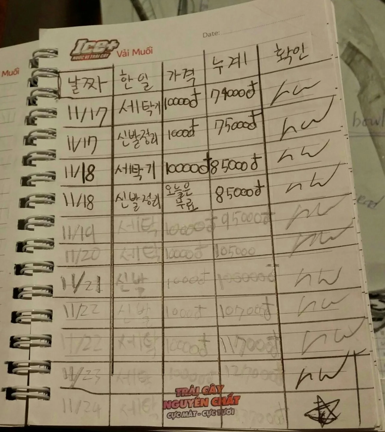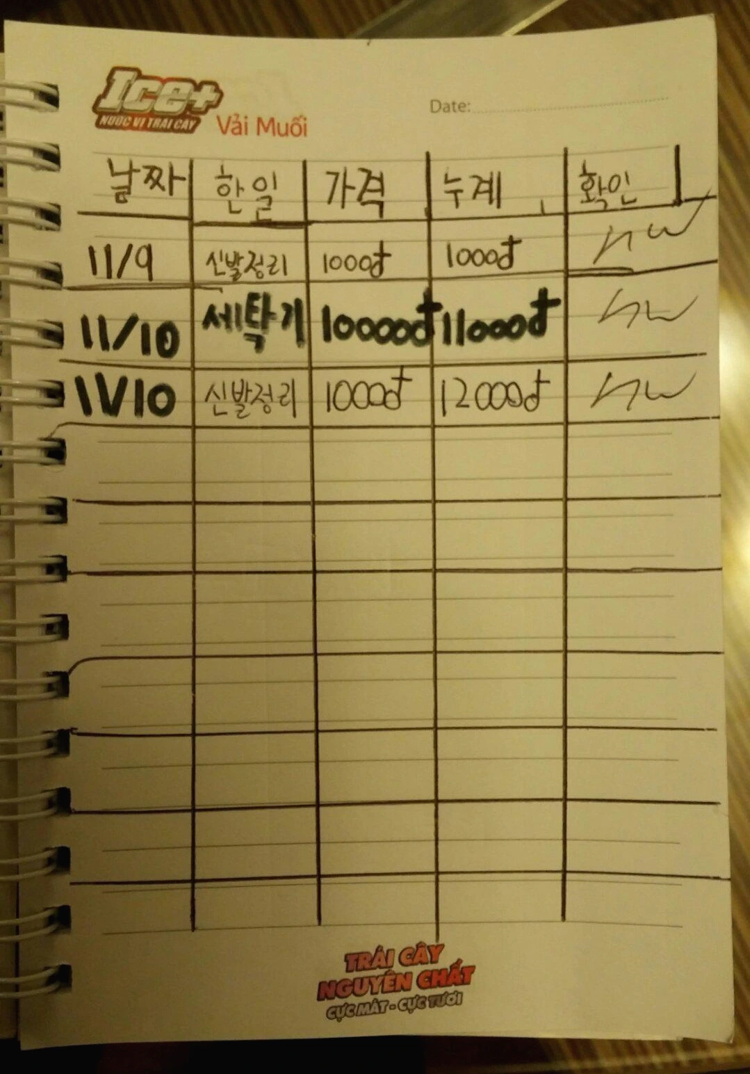 기특하게도 자를 대고 줄도 긋고, 반듯반듯하게 글씨도 쓰고, 화폐단위 동(đ)도 쓰고.