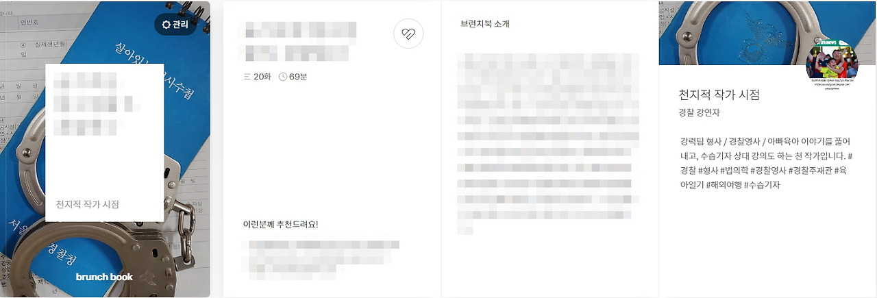 강력팀 형사 / 경찰영사 / 아빠육아 이야기를 풀어내고, 강의도 하는 천 작가입니다. SBS 꼬꼬무 37회 냉동고 영아 편에도 출연했고, 영화 범죄도시2 자문 경찰관이기도 합니다.