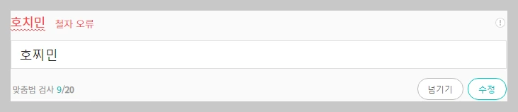 철자 오류 '호치민 ⇒ 호찌민' 이렇게 뜬다.