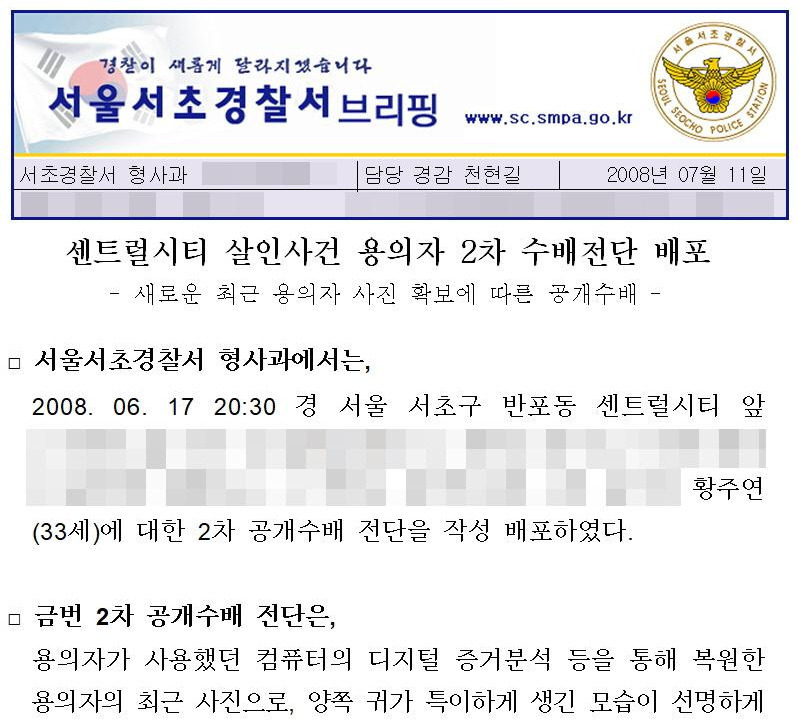 2008년 6월 17일 20:30경 센트럴시티 살인사건 피의자 황주연은 그렇게 특정이 되었다.