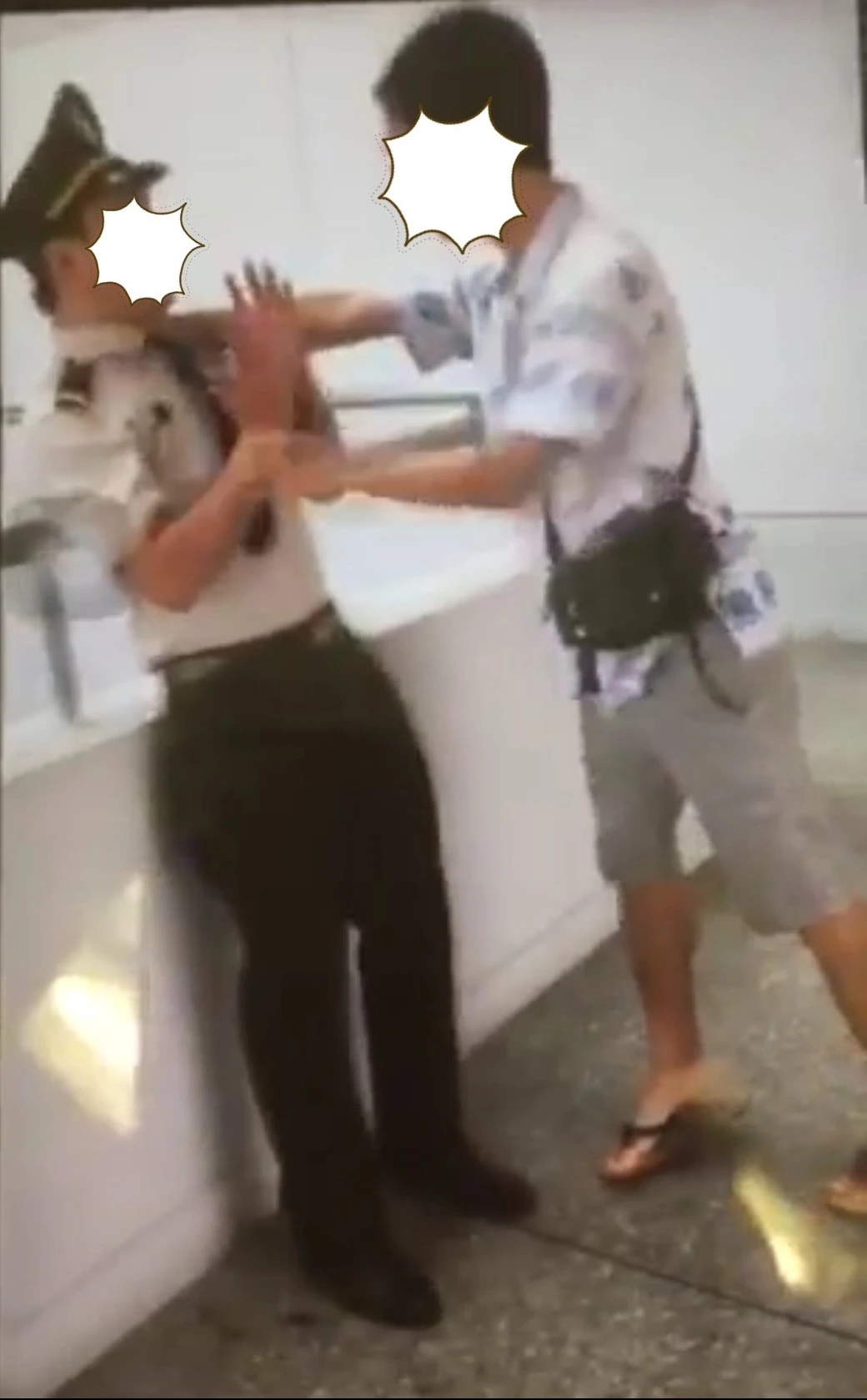 겁도 없이 떤선녓 공항 보안요원을 폭행했다.