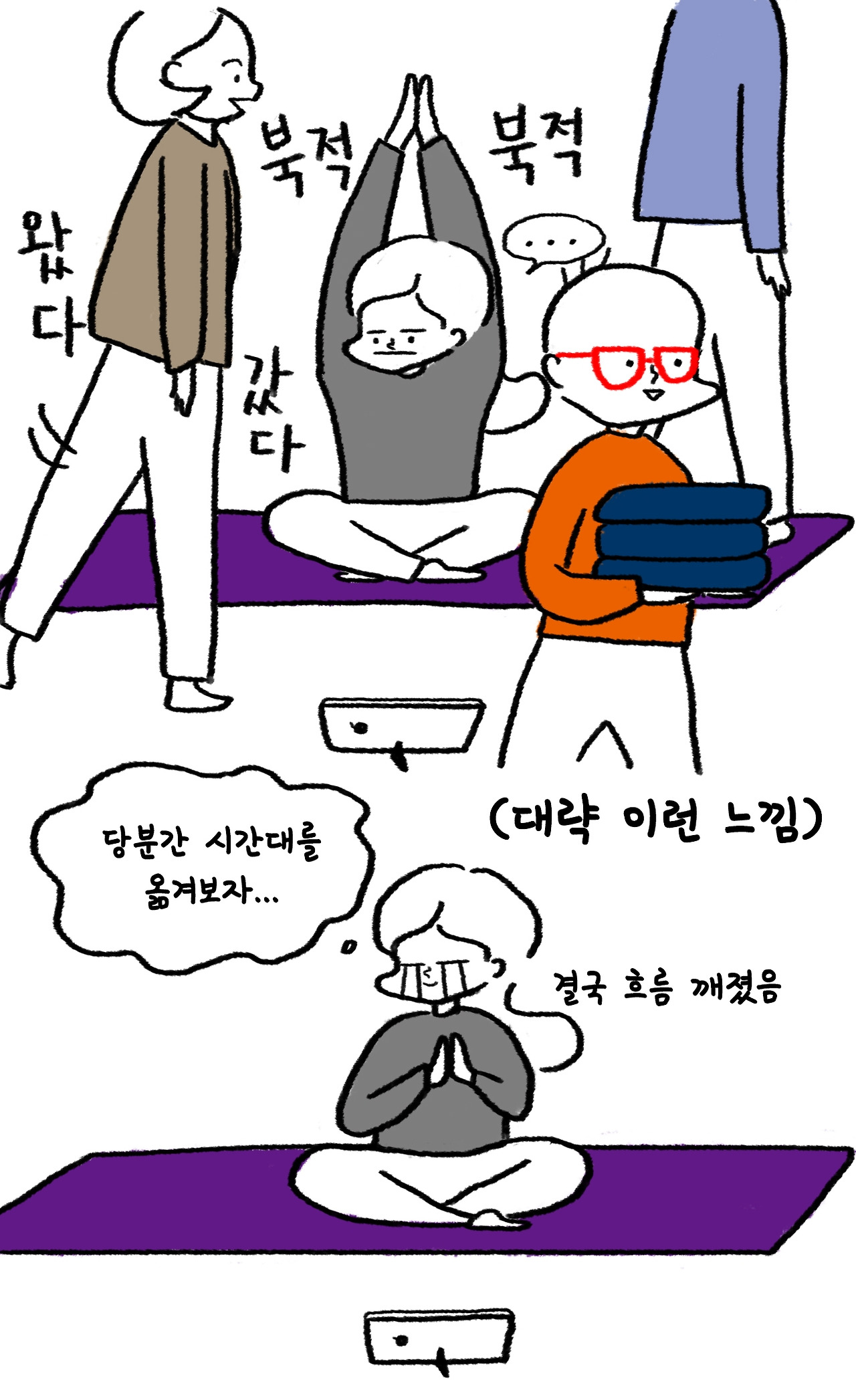 요가를 시작하기만 하면 주변이 북적대는 통에