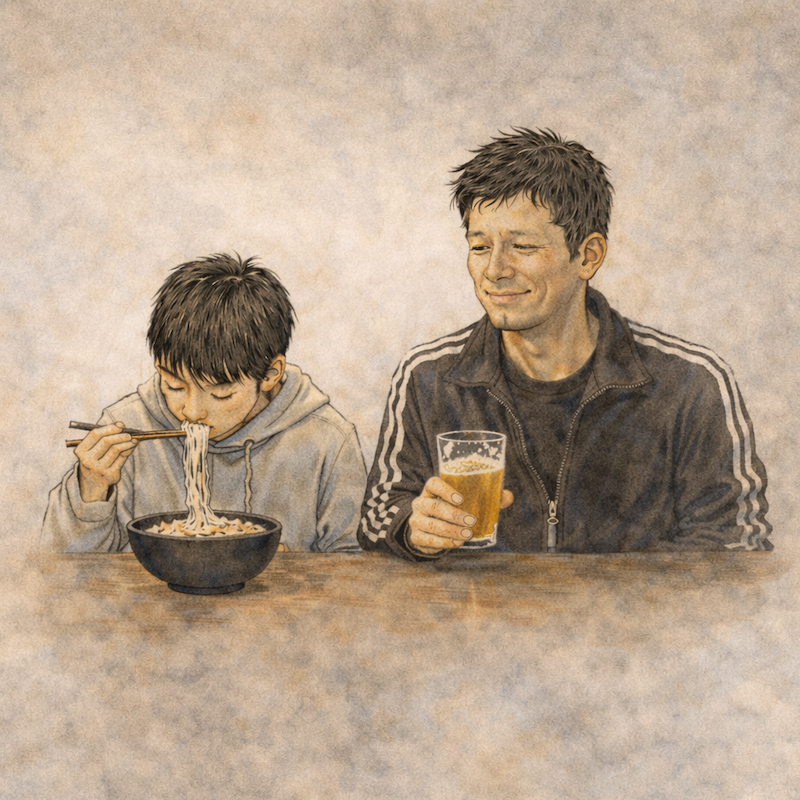 아직 이른 시간, 비어 있는 가게에서 식사하는 부자 모습이 좋아 보여 힐끗힐끗 쳐다보다가 눈이 마주쳐 가볍게 눈인사를 하는데 말을 걸어 주셨습니다.