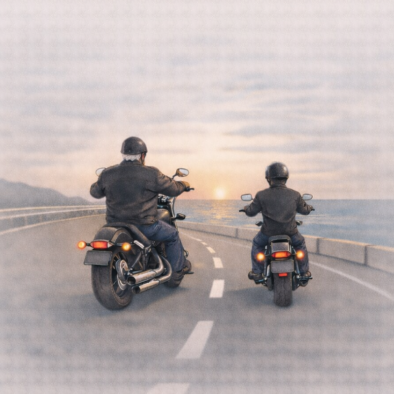 “바이크 좋아하는 것도 닮아버렸다니까, 하하하. 야, 이제 일 시작해서 언제 모을래? 첫 바이크는 자기 돈으로 사야지. 월급은 공평하게 준다. 암튼 열심히 해 봐.”