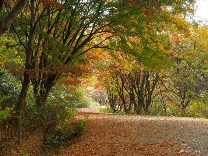갈등은 짧을수록 정신 건강에 좋은 법이다. 그냥 다음 버스를 기다리기로 했다. 앞으로 삼십 분 동안 우뚝하니 승장장에 있어야 했다. 무정한 1187번 버스에 대한 집착을 내려놓으니 짜증이 사라져갔다. 그렇게 마음을 비웠던 순간, 기적이 일어났다. 놀랍게도 1187-1번 버스가 달려오고 있었다. 눈앞에서 놓쳐 버린 버스와 동일한 노선이었다. 경악은 사라지고 경이로움이 찾아왔다. 순리를 따르면 이렇게 술술 해결되는 법인가 싶었다. 덕분에 오후 햇살을 받으며 가을 산의 너른 품으로 들어갈 수 있었다.
