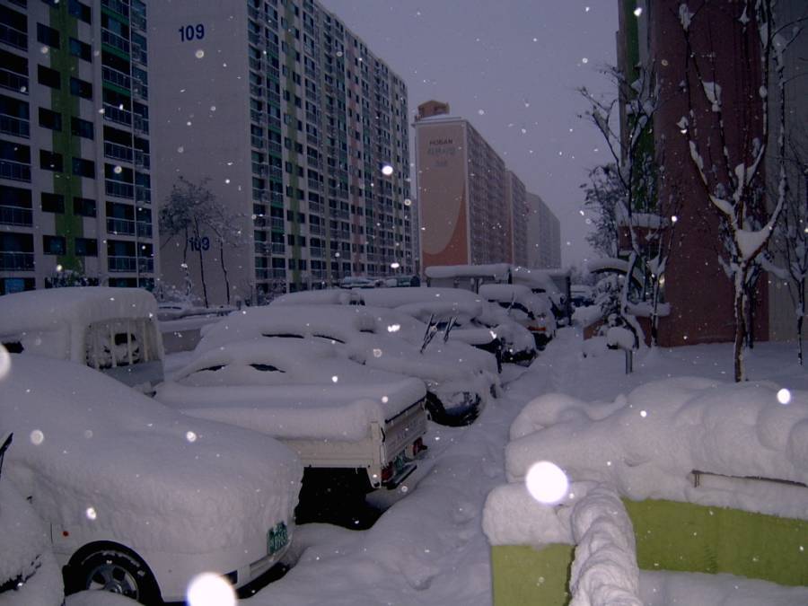 몇 년간 경험하지 못했던 폭설이 내렸다. 출근길 운전을 단념하고 평소보다 이른 시간에 집을 나섰다. 발이 쌓인 눈에 푹푹 빠져서 인도로 걸어가기가 곤란한 지경이었다. 별수 없이 눈길 위에 패어있는 바퀴 자국을 따라 걸어야했다. 퍼붓는 눈 폭탄을 뚫고 버스 승강장에 겨우 도착했다. 눈 덥힌 도로를 바라보니 차들이 달팽이처럼 설설 기어가고 있었다.