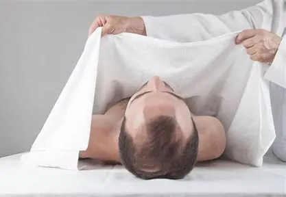 영안실 직원이 우리가 입을 상복의 치수를 재어갔다. 유가족의 검은 양복과 넥타이는 죽음의 제의다. 상복으로 갈아입은 상주들은 초췌했고 눈자위는 붉었다. 왼쪽 팔에 삼베로 된 띠와 사위 표시가 새겨진 리본을 찼다. 가족 모두의 검은색 옷을 보노라니, 장인어른의 마지막 길을 잘 보내드려야겠다는 의무감이 생긴다.