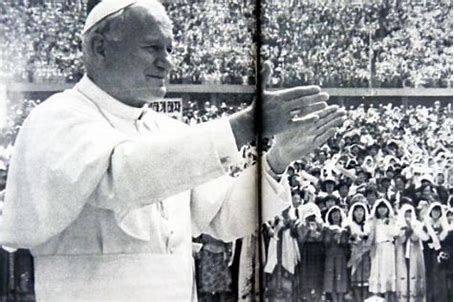 뒷모습만 남기고 사라졌던 요한 바오로 2세가 한국을 다시 찾은 것은 그로부터 5년 뒤였다. 당시 나는 요셉이란 이름으로 세례를 받았던 터라 성당에서 대절한 버스를 타고 새벽녘 여의도로 향했다. 1989년 가을이었다. 여의도 상공에 떠있는 가을 햇살은 따가웠다. 그날 정장 차림에 신문지 모자를 쓴 나는 60만 군중들과 함께 외쳤다. “비바 파파”, “비바 파파”