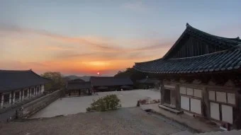 공양간에서 식사를 마친 후, 경내를 서성였다. 하늘가에는 어둠이 조금씩 내려오고 있었다. 그때 어느 거사님이 ‘여기 올라와서 보라’는 외침이 들렸다. 대웅전 계단 위에 올라 남쪽 바다를 바라보니 오~ 놀라워라. 허공에 진홍빛 홍시가 툭하니 터졌나. 뉘엿뉘엿 지는 태양을 품은 붉은 낙조가 하늘과 땅에 번지고 있었다. 나는 감탄사만 토할 뿐 말이 끊어졌다. 아내와 두 아이 얼굴에도 노을빛에 젖어 있었다.