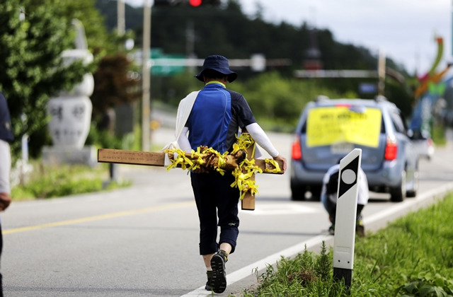 애통한 걸음도 만났다. 세월호에 있었던 아들의 아빠가 십자가를 메고 걸었다. 안산에서 팽목항까지 무려 37일 동안. 그를 어떤 모임에서 보았다. 길의 열기로 그을린 검은 얼굴과 갈라진 입술 그리고 노란 리본이 달린 나무 십자가는 처연했다. 세상에서 가장 슬픈 걸음이었다. 팽목항에 도착한 그 아빠는 프란치스코 교황에게 십자가를 바쳤다. 교황은 지금도 노란 리본이 달린 그 십자가를 바티칸에 귀하게 모시고 있다.
