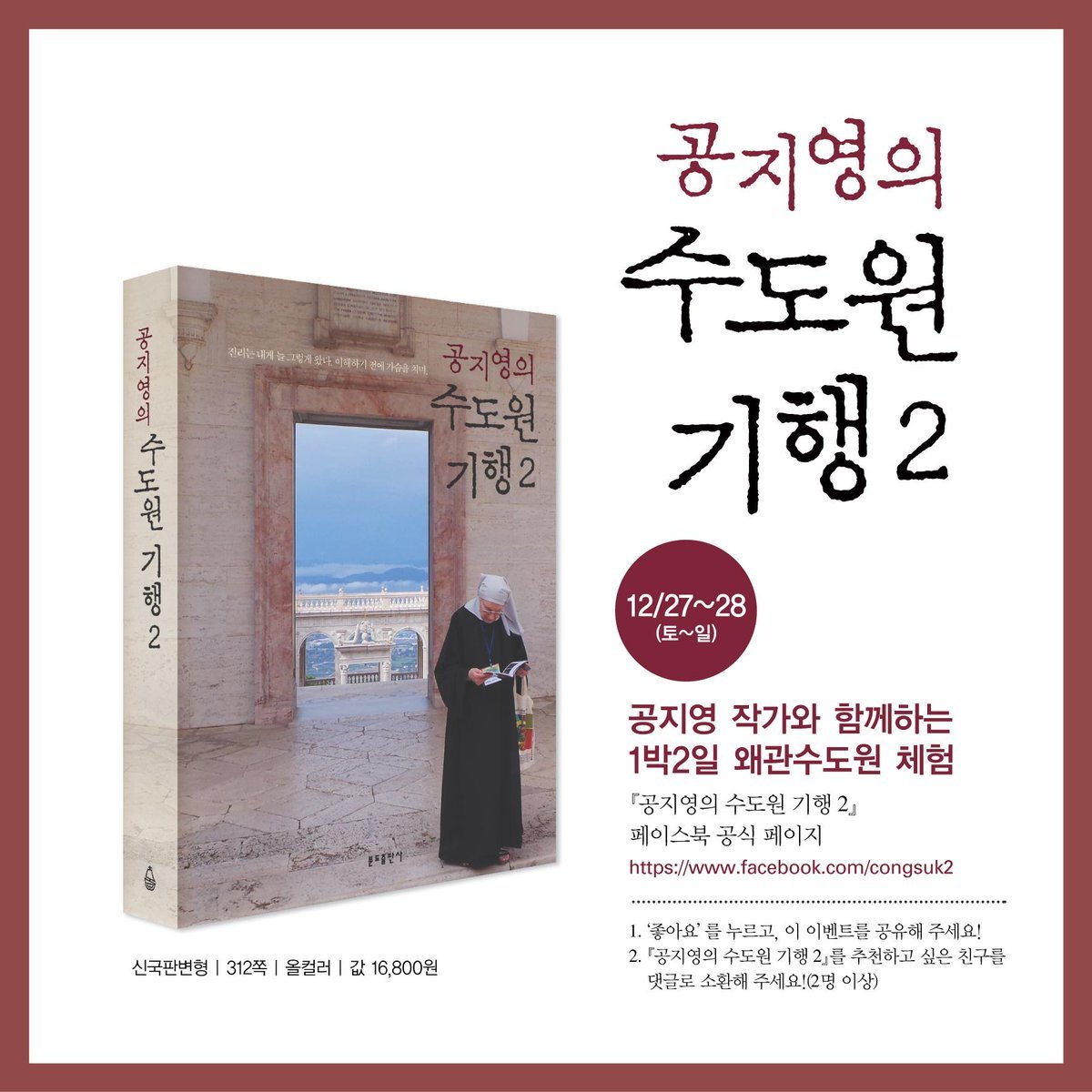 공지영 작가의 <수도원 기행2>에는 가슴을 먹먹하게 하는 내용이 있다. 바티칸 교황청 밀폐된 어느 작은 방에서, 무려 44년 동안 기도만으로 사셨던 수녀님이 계셨다. 이름은 ‘산 나자레’ 수녀님이다. 수녀님은 작은 방에 자신을 유폐한 채, 불쌍한 코리아와 교황청을 위한 기도를 서원했다.