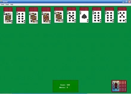 그리고 윈도우즈 새 버전에서 추가된 스파이더게임 역시 솔리테어의 하나로 무작위로 배분된 카드를 A부터 K까지 순서대로 쌓으면 된다. 카드는 스페이드 무늬 하나인데 이어지는 순서의 카드 위나 빈 덱으로 이동이 가능하고 한 줄을 맞추면 사라진다. 더 이상 옮길 카드가 없으면 오른쪽 하단의 카드덱을 눌러 기존 카드 위로 새로운 카드를 한 장씩 받아서 다시 순서를 맞추는데 카드를 맞춰 모든 덱의 카드를 없애면 된다.