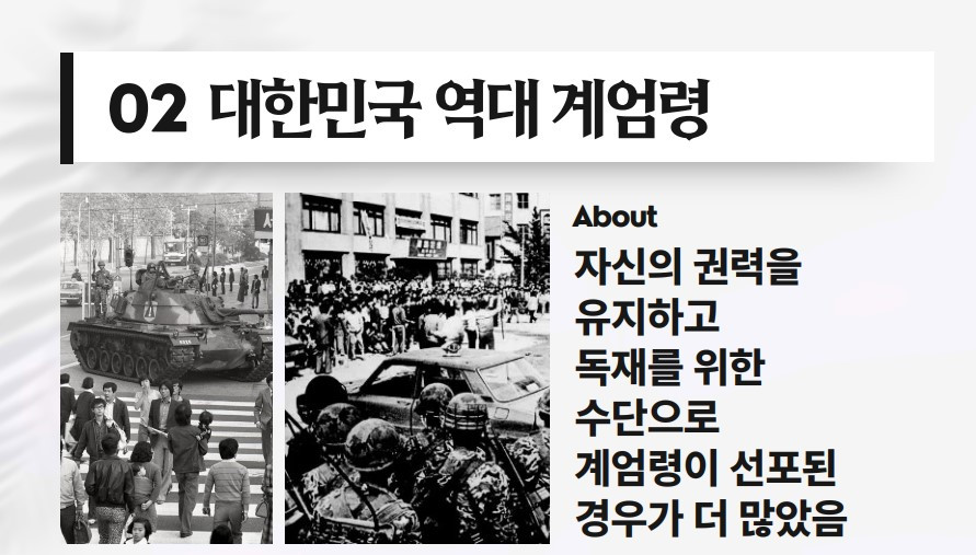 -응, 간밤에 우리나라에 비상계엄령이라는 게 있었거든.