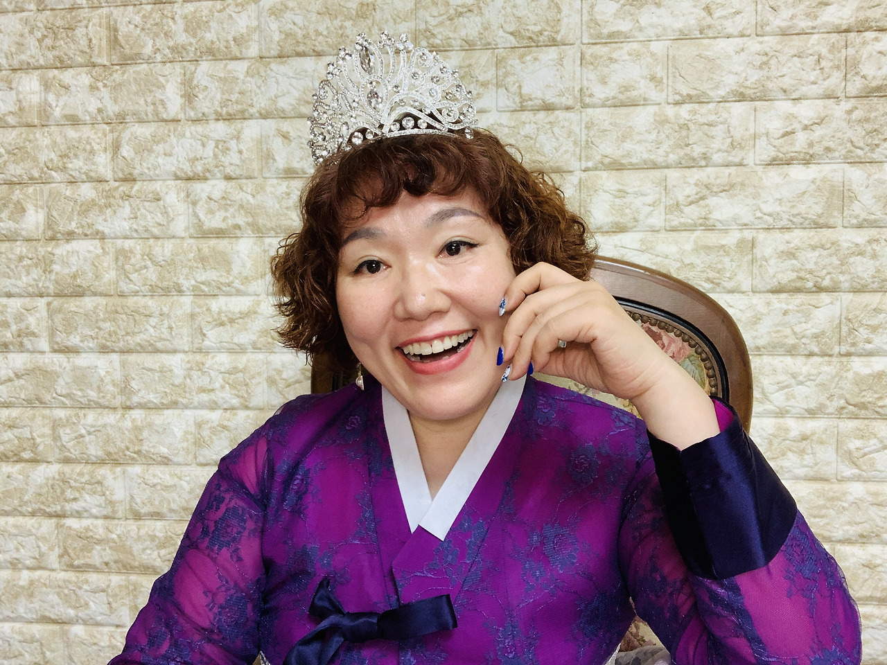 직접 만든 화관을 쓰고 한복모델 선발 대회에 나가 본선에 진출하기도 한 샘정입니다.