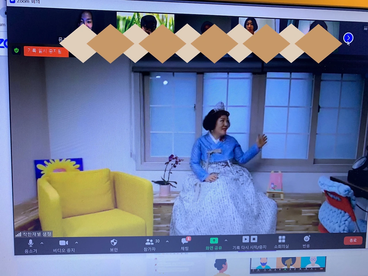 코로나 19로 인해 줌 강연을 시작하면서 한복의 왕관은 샘정의 시그니처가 되었답니다.