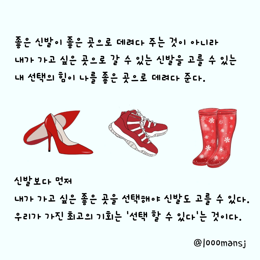 내 인생의 주인공이 되려면 좋은 신발을 고를 수 있어야 한다