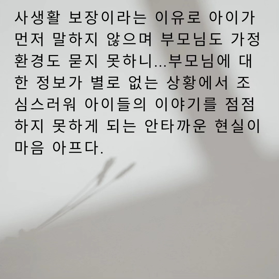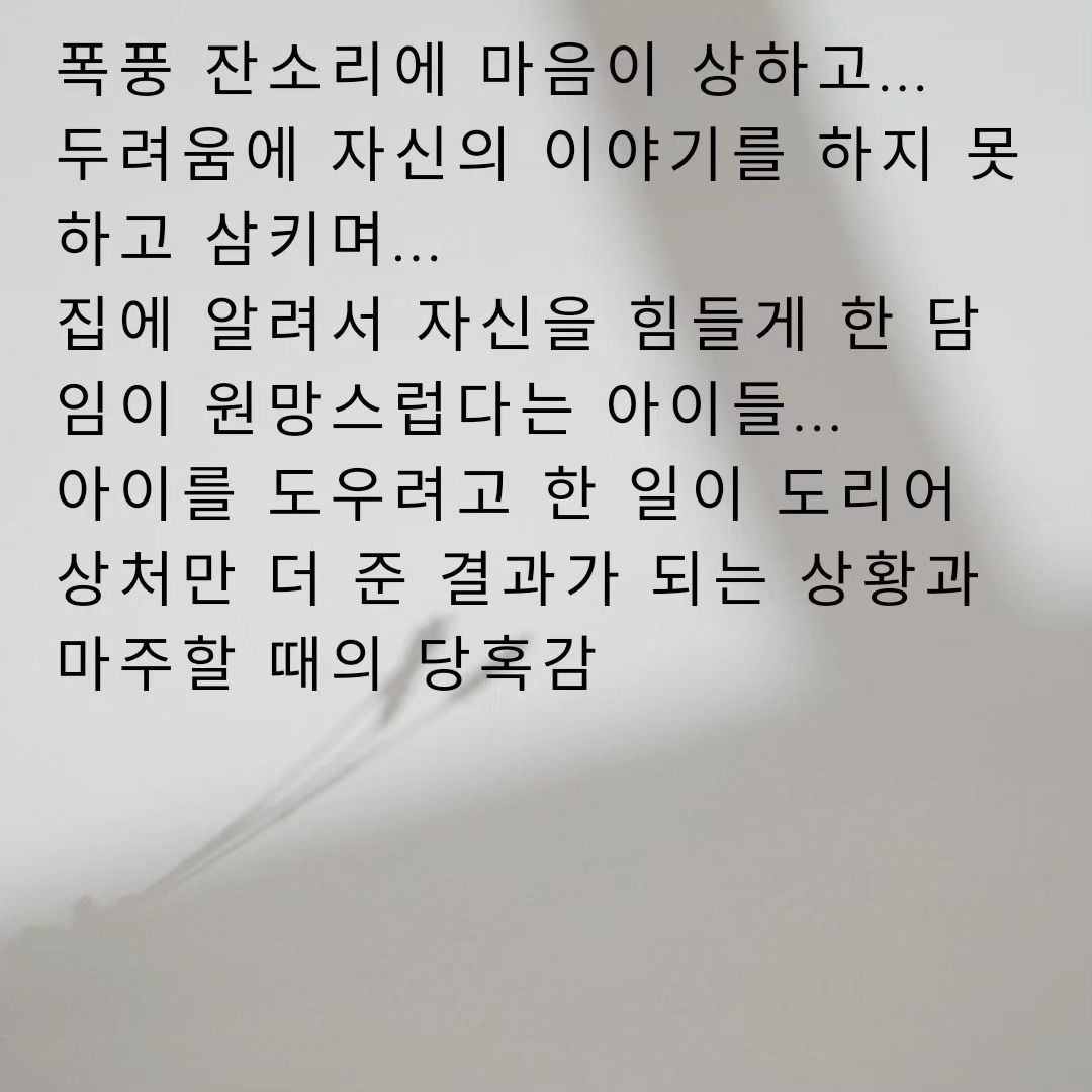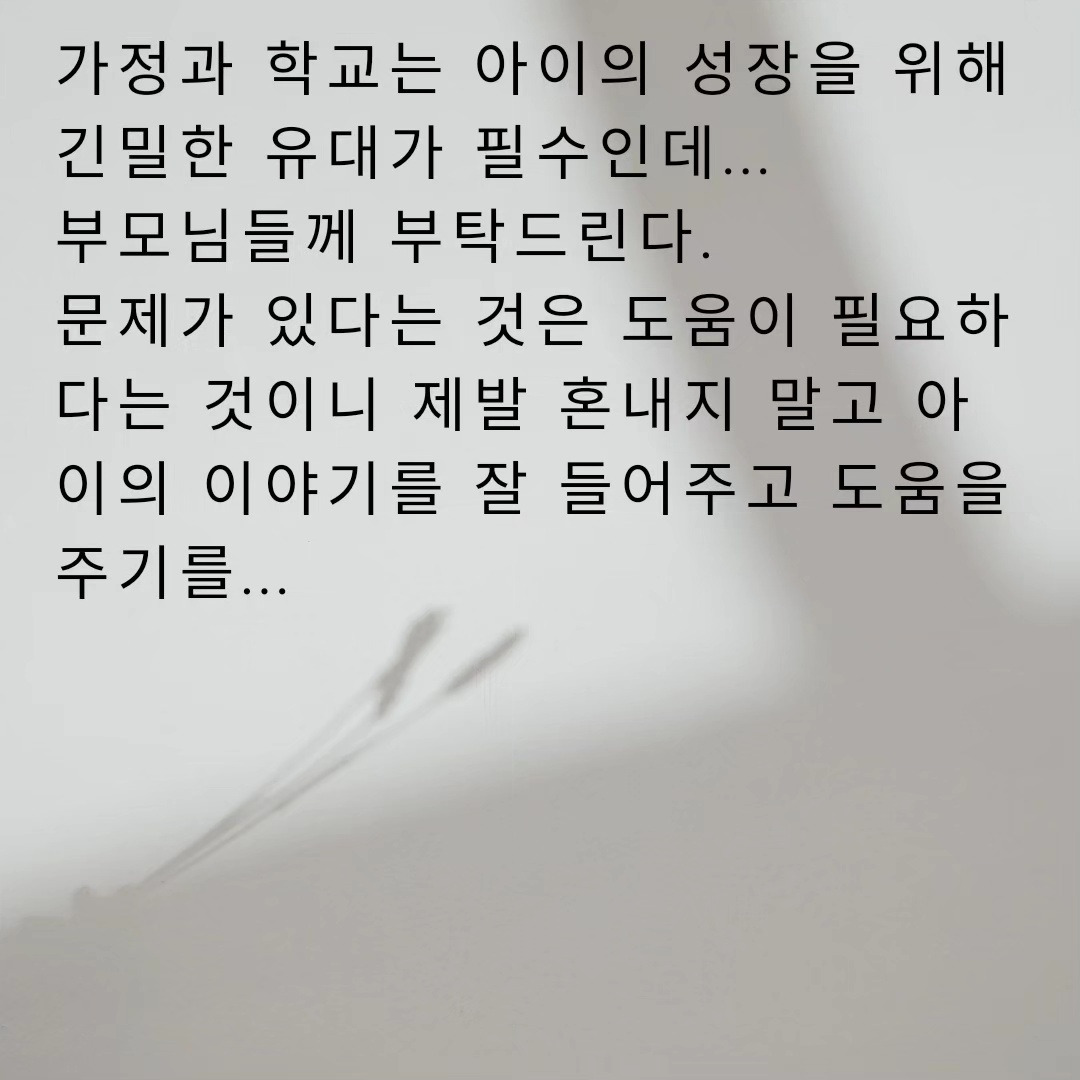 가정과 학교는 아이를 위해 잘 소통하여야 하기에.... 모두에게 조금 더 좋은 선택을 할 수 있기를 간절히 바랍니다.