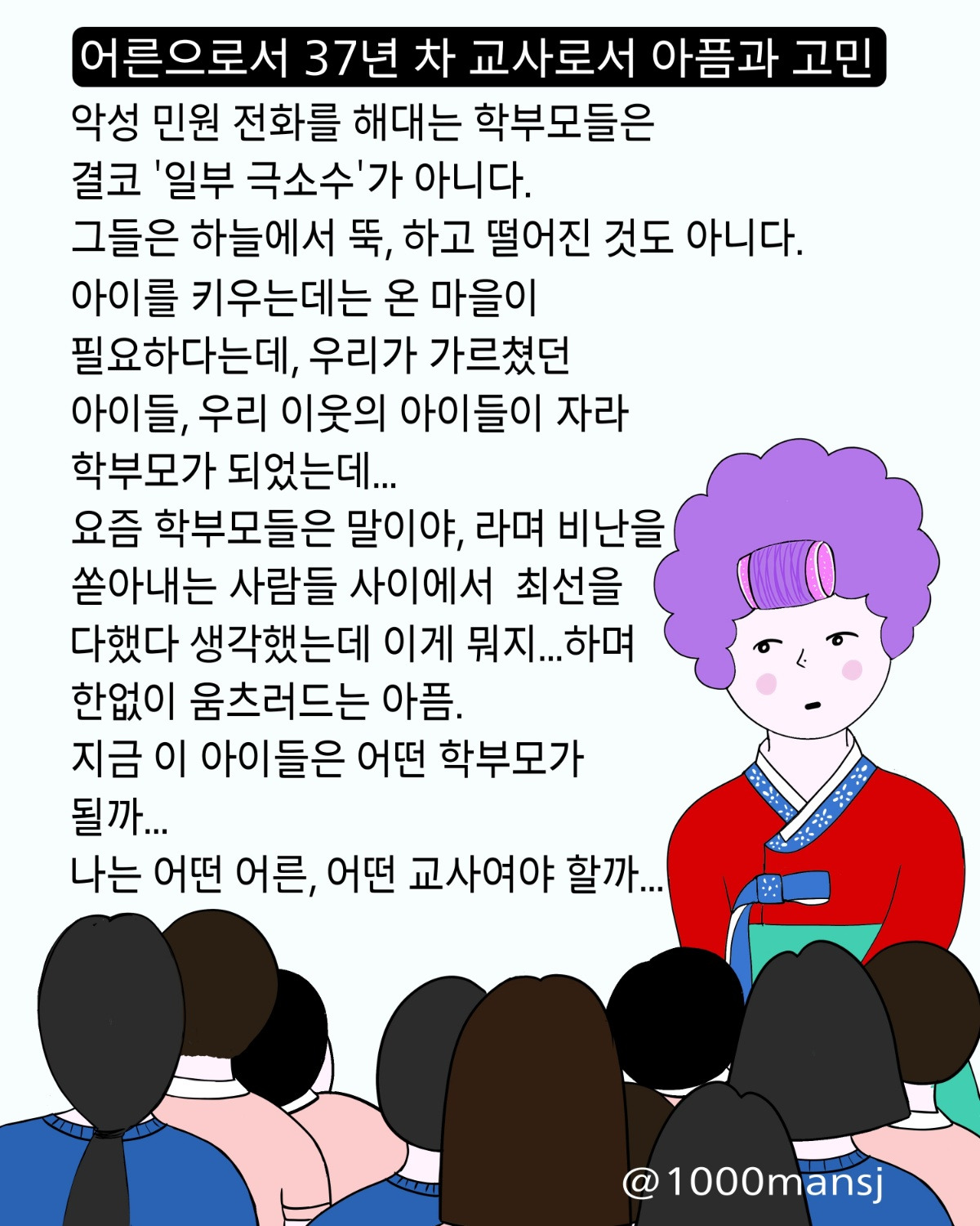 그 민원 학부모들이 학생이었을 때도 교사였던 사람으로서의 복잡한 심정을...