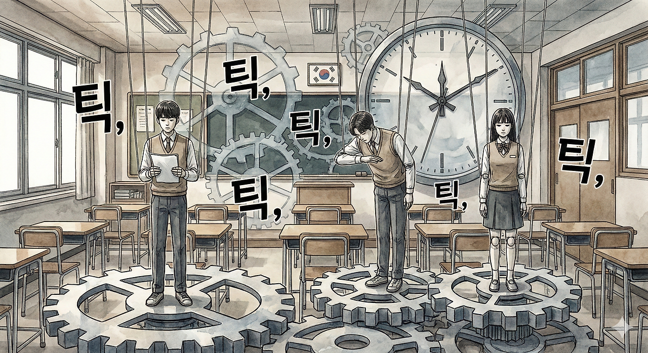 민수가 교실 문을 닫았다. 소음이 사라지자 시계 소리만 남았다. ‘틱, 틱, 틱.’