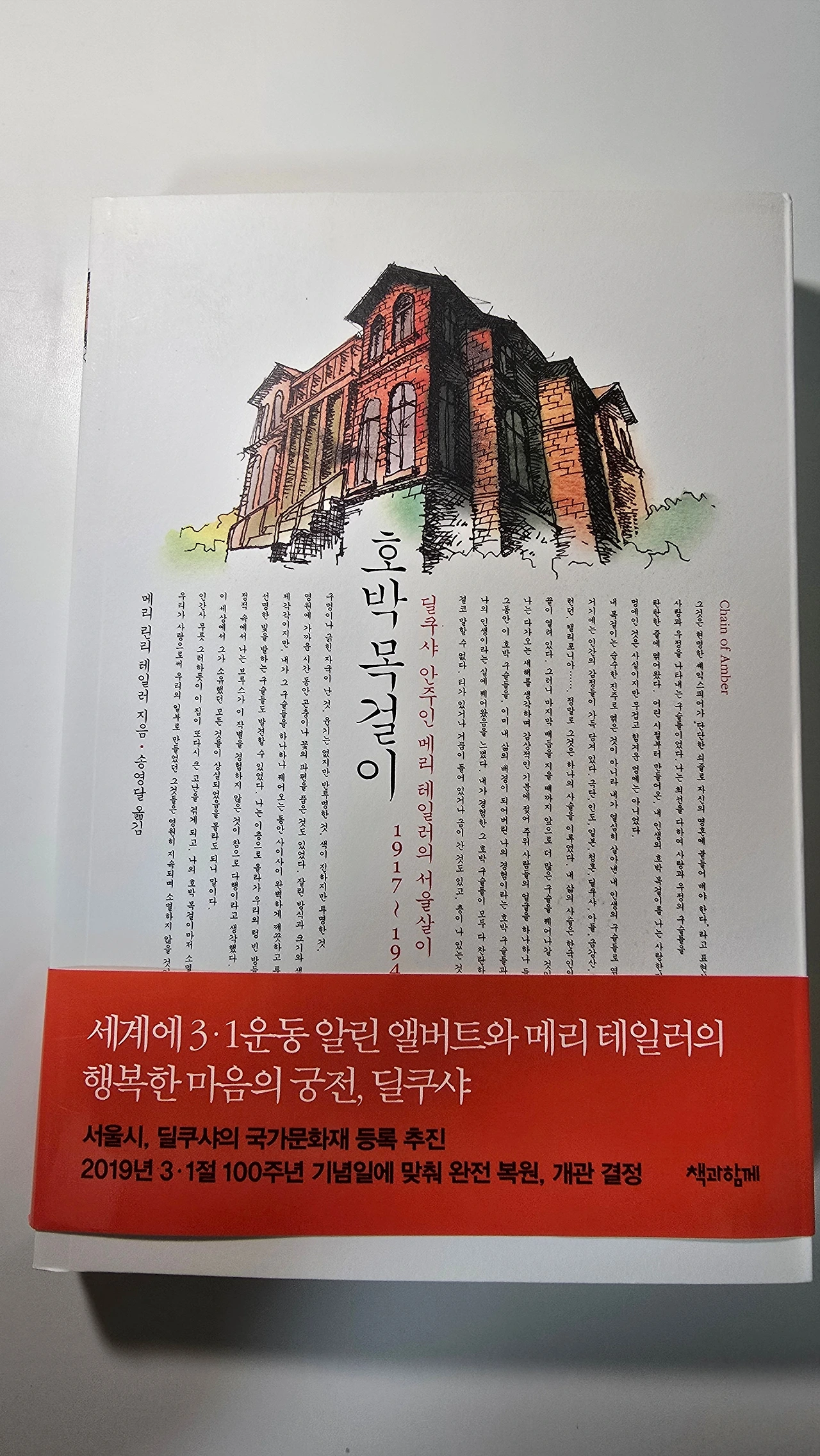 안녕하세요? 오늘은 일제강점기 시기를 그린 논픽션 책《호박목걸이》를 소개하려고 해요. 저자의 남편, 앨버트 테일러는 3•1 운동과 제암리 학살을 외신에 알리는데 힘쓴 인물이에요. 그는 당시 고위층이자 미국 UP 통신 기자로써 조선을 돕고 서대문 감옥에 수감도 되었다가 미국으로 강제 추방당하고 죽어서 유골은 서울 양화진 묘지에 묻힌 분이에요.