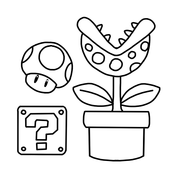 게임 속 버섯, 꽃을 따라그리고 컬러링할 수도 있어요.