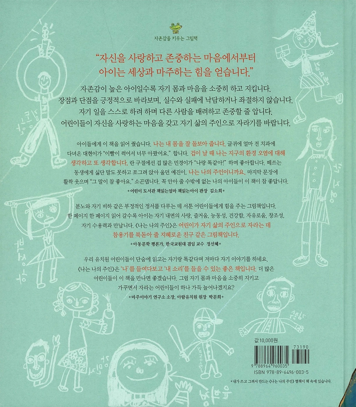 나의 주인으로, 자신에게 좋은 것만 주려는 마음가짐이 필요함을 상기시켜줄 필요가 있다. ‘나는 나의 주인(채인선 글, 토토북)’과 같은 그림책을 함께 읽어보는 것도 좋은 방법이다.