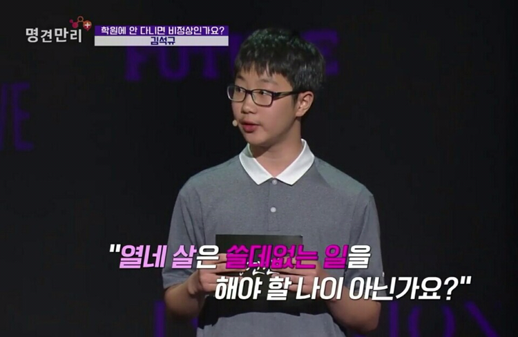 아이는 청중을 향해 질문을 던집니다. 자신이 수험생이 될 때쯤이면 하나의 정답만 강요받는 것이 아닌, 다양성을 존중 받는 세상이 될 수 있을까라고요. 아이의 이야기를 들은 어른들은 모두 말문이 막히고 말았습니다. 하나도 틀린 말이 없었으니까요. 앳된 얼굴을 한 아이의 진심어린 물음에 꼭 답해주고는 싶지만 그럴 수 없으니까요.
