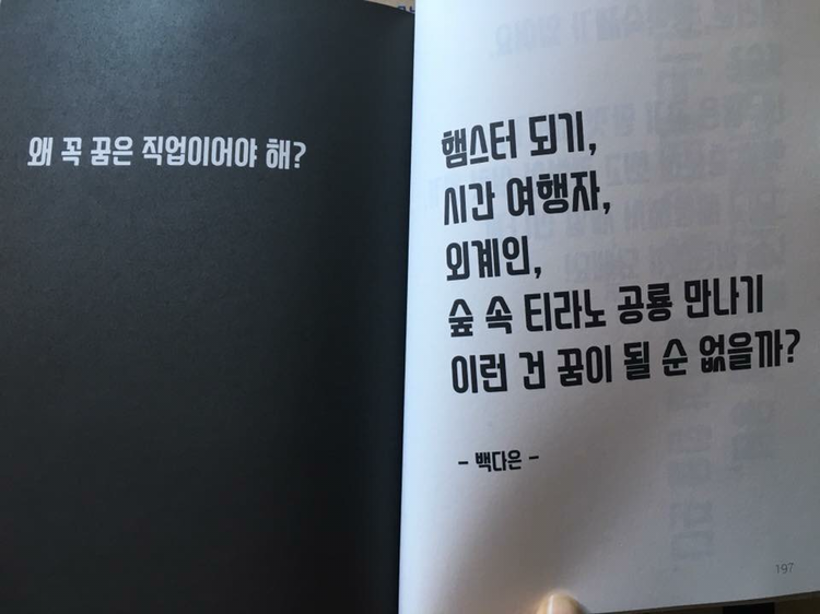 벌써부터 서열화된 대학의 이름을 하나하나 꼽으며, 안정적인 직장 혹은 엄청난 부와 명예 등을 자신의 꿈이라 말하는 아이들을 볼 때면 우리 사회의 어두운 단면을 그대로 보여주는 것 같아 씁쓸한 마음을 감출 수가 없습니다.
