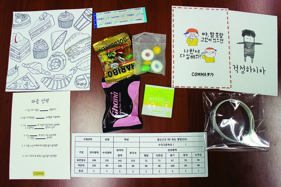 수지고등학교 체인지메이커 동아리 ‘콤마’ 학생들이 직접 기획, 참여한 ‘힐링나눔프로젝트’는 그 이해를 돕는 현실적인 예시가 될 것입니다. 모둠활동이 중요해진 고교 생활에서 무임승차하는 일부 친구들 때문에 서로 얼굴 붉히는 상황이 많아지자, 손편지·비타민·컬러링북 도안·팔찌등 ‘힐링키트’를 만들어 친구들과 나누며 서로를 다독이는 프로젝트입니다. 특히 키트는 학생들이 받는 이를 정해서 혹은 자기 자신에게 편지를 쓴 뒤 콤마에 건네면 힐링키트에 편지를 넣어 배달해주는 방식으로 나눠줬는데, <나미야 잡화점의 기적>이란 책에서 아이디어를 얻었다고 합니다. 사람들이 익명으로 편지를 보내 고민을 말하면 답장해주는 내용인데, 의미 없는 답변일지라도 그저 이야기를 들어주는 것만으로 위로받는 걸 보고 영감을 얻었다고 합니다.