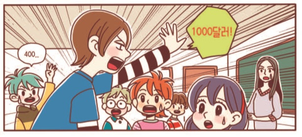 선생님 말씀이 떨어지기가 무섭게 10달러, 15달러, 20달러 올라가는데.. 그 때, 강수라는 아이가 1000달러! 올인해버린 거죠.