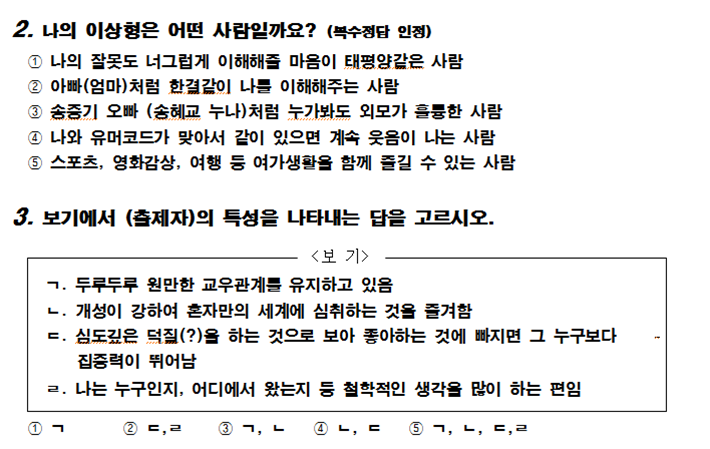 2. 보기에서 출제자 ㅇㅇ의 특성을 나타내는 답을 고르시오. (3점)