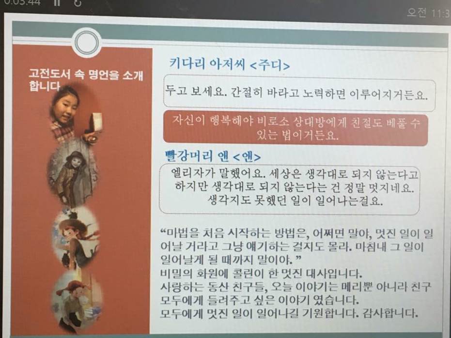 어린이 TED라는 시간을 통해 다양한 주제로 발표하면서 각자 삶의 의미를 찾아볼 수 있는 기회도 가져보았습니다. (고전수업, 주제일기, NIE 연계)