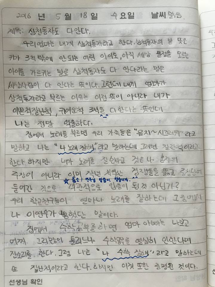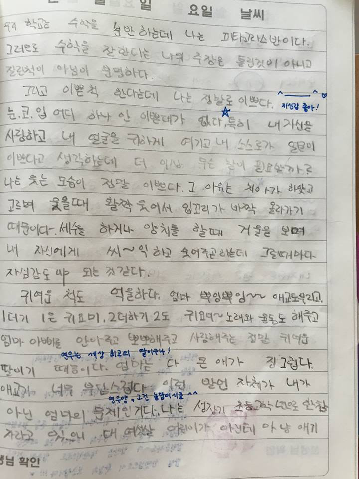 한 아이의 일기는 매번 읽다보면 입이 떡 벌어졌습니다. 그 내용을 요약해보면 이렇습니다.